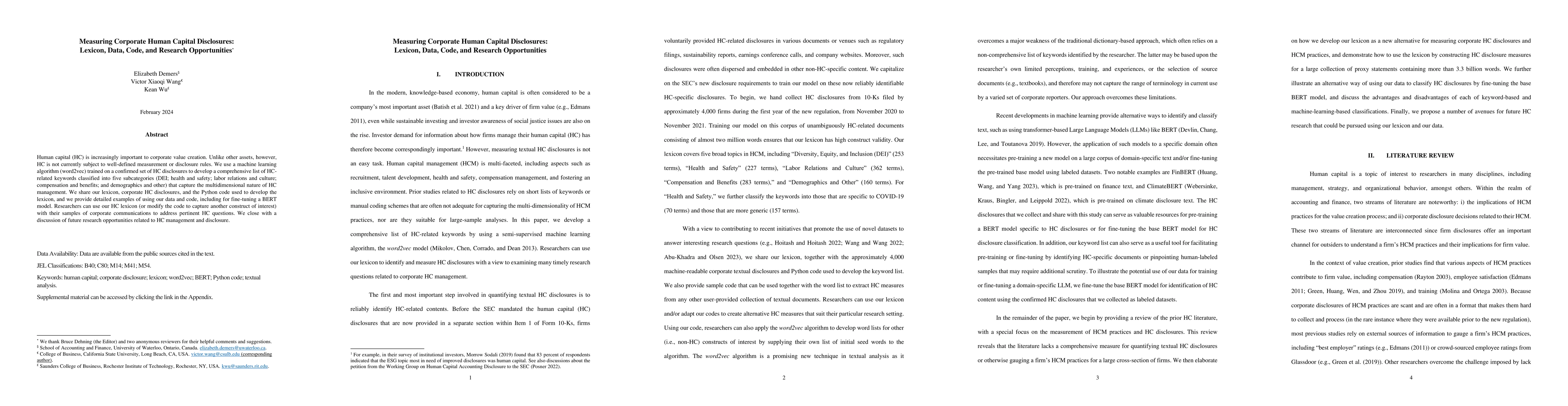 Human capital (HC) is increasingly important to corporate value creation. Unlike other assets, however, HC is not currently subject to well-defined measurement or disclosure rules. We use a machine learning algorithm (word2vec) trained on a confirmed set of HC disclosures to develop a comprehensive list of HC-related keywords classified into five subcategories (DEI; health and safety; labor relations and culture; compensation and benefits; and demographics and other) that capture the multidimensional nature of HC management. We share our lexicon, corporate HC disclosures, and the Python code used to develop the lexicon, and we provide detailed examples of using our data and code, including for fine-tuning a BERT model. Researchers can use our HC lexicon (or modify the code to capture another construct of interest) with their samples of corporate communications to address pertinent HC questions. We close with a discussion of future research opportunities related to HC management and disclosure.