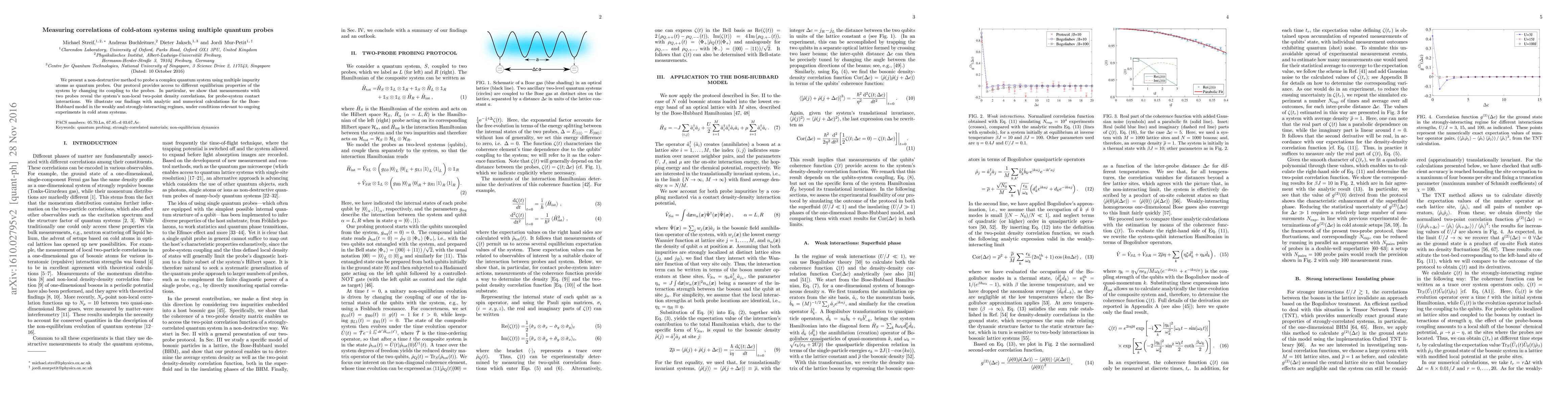 This paper presents a non-destructive method to probe complex quantum systems using multiple impurity atoms as quantum probes, revealing non-local two-point density correlations through measurements with two probes. The method is demonstrated analytically and numerically for the Bose-Hubbard model, applicable to ongoing cold atom experiments.