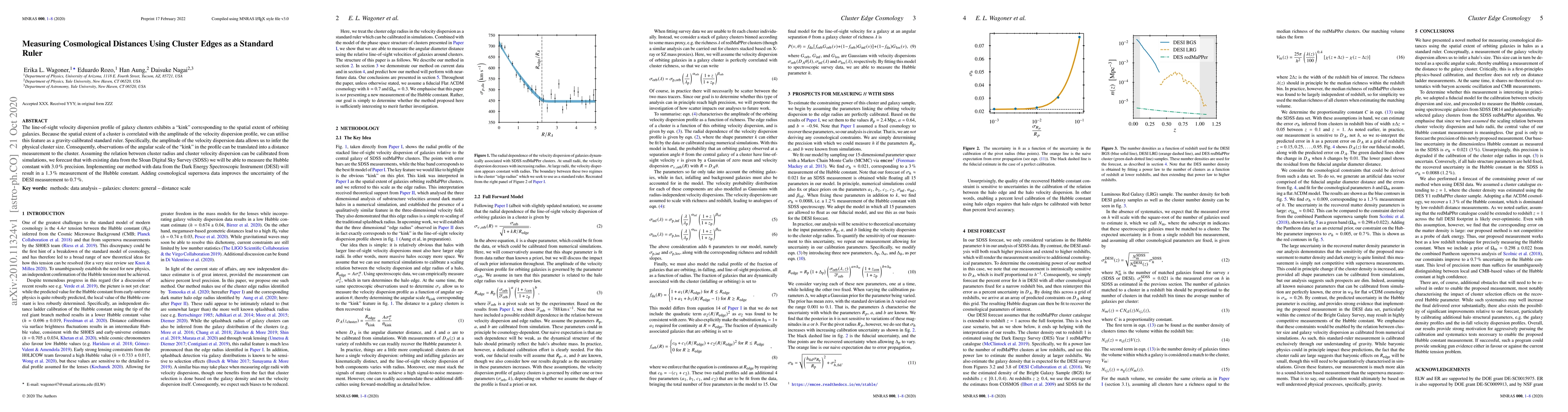 The line-of-sight velocity dispersion profile of galaxy clusters exhibits a "kink" corresponding to the spatial extent of orbiting galaxies. Because the spatial extent of a cluster is correlated with the amplitude of the velocity dispersion profile, we can utilise this feature as a gravity-calibrated standard ruler. Specifically, the amplitude of the velocity dispersion data allows us to infer the physical cluster size. Consequently, observations of the angular scale of the "kink" in the profile can be translated into a distance measurement to the cluster. Assuming the relation between cluster radius and cluster velocity dispersion can be calibrated from simulations, we forecast that with existing data from the Sloan Digital Sky Survey (SDSS) we will be able to measure the Hubble constant with $3\%$ precision. Implementing our method with data from the Dark Energy Spectroscopic Instrument (DESI) will result in a $1.3\%$ measurement of the Hubble constant. Adding cosmological supernova data improves the uncertainty of the DESI measurement to $0.7\%$.