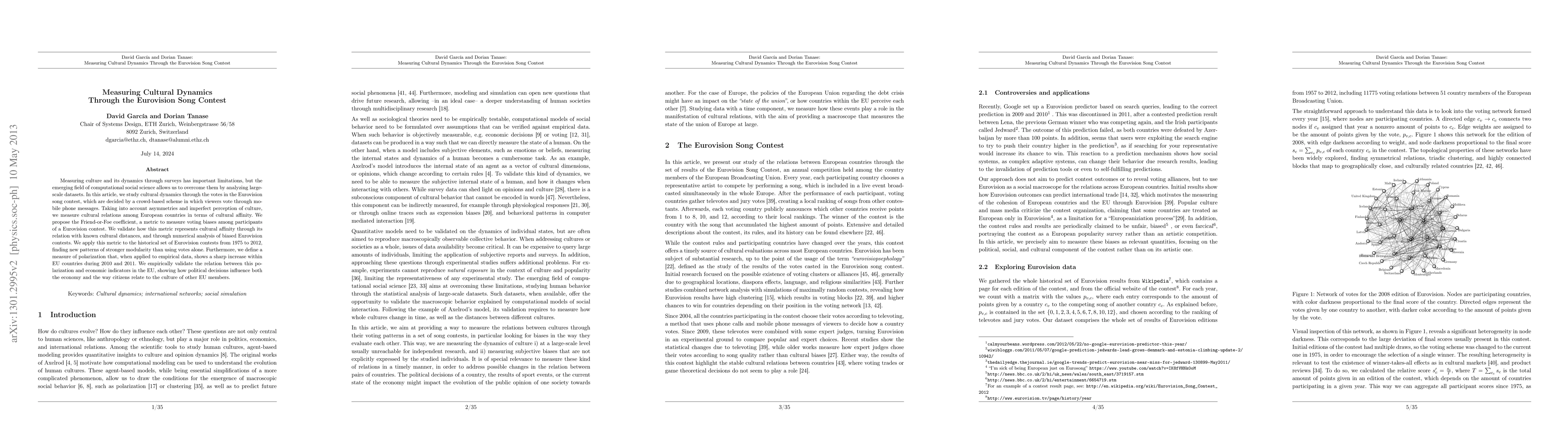 This paper introduces a computational approach to measure cultural dynamics among European countries using Eurovision Song Contest votes. It proposes the Friend-or-Foe coefficient to quantify voting biases, revealing stronger cultural modularity and increased polarization within EU countries during 2010-2011, correlating with economic indicators.