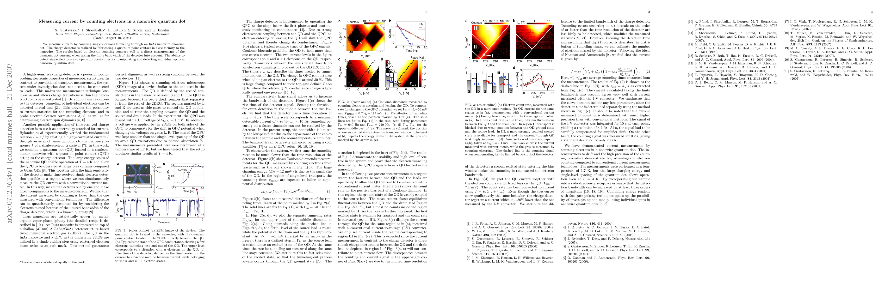 This paper measures current by counting single electrons tunneling through an InAs nanowire quantum dot using a quantum point contact as a charge detector, demonstrating accurate results when accounting for detector bandwidth. The technique also enables potential manipulation and detection of individual electron spins in the quantum dot.