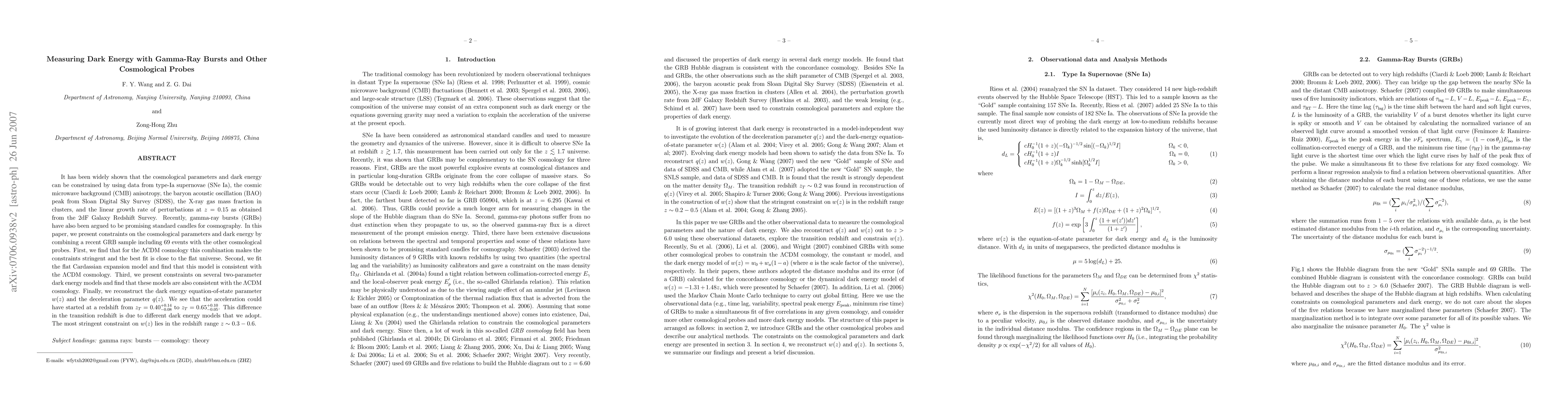 This paper combines gamma-ray bursts (GRBs) and other cosmological probes to constrain dark energy and cosmological parameters, finding that the LambdaCDM model fits well and that the acceleration of the universe likely started between redshifts z_T=0.40 and z_T=0.65. The study also supports the consistency of the Cardassian expansion model and various dark energy models.