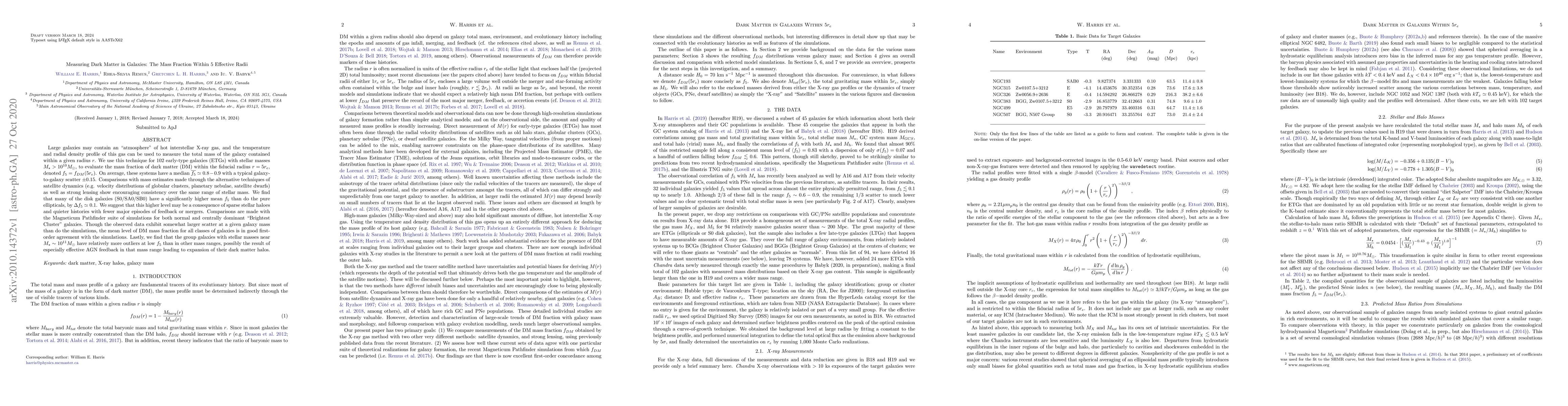 Large galaxies may contain an "atmosphere" of hot interstellar X-ray gas, and the temperature and radial density profile of this gas can be used to measure the total mass of the galaxy contained within a given radius r. We use this technique for 102 early-type galaxies (ETGs) with stellar masses M_* > 10^10 M_Sun, to evaluate the mass fraction of dark matter (DM) within the fiducial radius r = 5 r_e, denoted f_5 = f_{DM}(5r_e). On average, these systems have a median f_5 = 0.8 - 0.9 with a typical galaxy-to-galaxy scatter +-0.15. Comparisons with mass estimates made through the alternative techniques of satellite dynamics (e.g. velocity distributions of globular clusters, planetary nebulae, satellite dwarfs) as well as strong lensing show encouraging consistency over the same range of stellar mass. We find that many of the disk galaxies (S0/SA0/SB0) have a significantly higher mean $f_5$ than do the pure ellipticals, by Delta f_5 = 0.1. We suggest that this higher level may be a consequence of sparse stellar haloes and quieter histories with fewer major episodes of feedback or mergers. Comparisons are made with the Magneticum Pathfinder suite of simulations for both normal and centrally dominant "Brightest Cluster" galaxies. Though the observed data exhibit somewhat larger scatter at a given galaxy mass than do the simulations, the mean level of DM mass fraction for all classes of galaxies is in good first-order agreement with the simulations. Lastly, we find that the group galaxies with stellar masses near M_* ~ 10^11 M_Sun have relatively more outliers at low $f_5$ than in other mass ranges, possibly the result of especially effective AGN feedback in that mass range leading to expansion of their dark matter halos.
