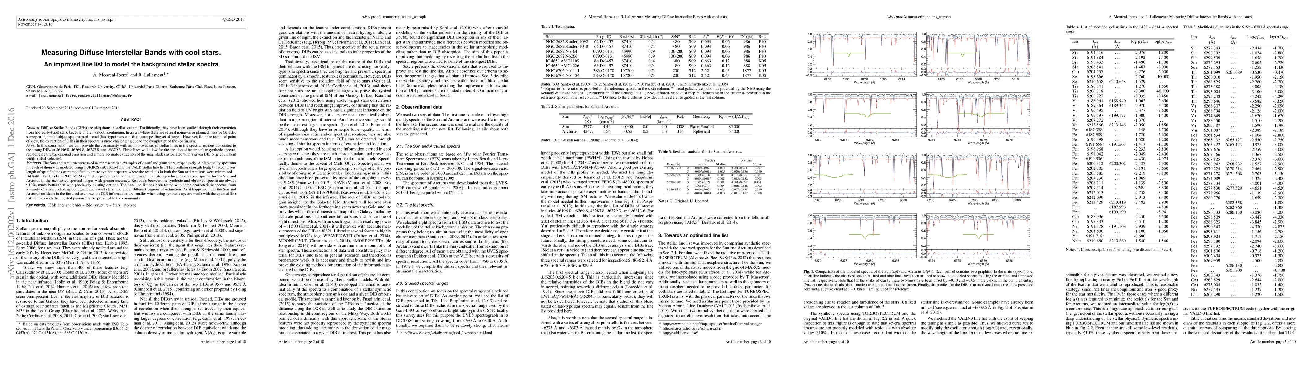 DIBs are ubiquitous in stellar spectra. Traditionally, they have been studied through their extraction from hot stars, because of their smooth continuum. In an era where there are several going-on or planned massive Galactic surveys using multi-object spectrographs, cool stars constitute an appealing set of targets. From the technical point of view, the extraction of DIBs in their spectra is more challenging due to the complexity of the continuum. In this contribution we will provide the community with an improved set of stellar lines in the spectral regions associated to the strong DIBs at l6196, l6269, l6284, and l6379. These lines will allow for the creation of better stellar synthetic spectra, reproducing the background emission and a more accurate extraction of the magnitudes associated with a given DIB. The Sun and Arcturus were used as representative examples of dwarf and giant stars, respectively. A high quality spectrum for each of them was modeled using TURBOSPECTRUM and the VALD stellar line list. The oscillator strength log(gf) and/or wavelength of specific lines were modified to create synthetic spectra where the residuals in both the Sun and Arcturus were minimized. The synthetic spectra based on the improved line lists reproduce the observed spectra for the Sun and Arcturus in the mentioned spectral ranges with greater accuracy. Residuals between the synthetic and observed spectra are always <10%, much better than with previously existing options. The new line list has been tested with some characteristic spectra, from a variety of stars, including both giant and dwarf stars, and under different degrees of extinction. As it happened with the Sun and Arcturus residuals in the fits used to extract the DIB information are smaller when using synthetic spectra made with the updated line lists. Tables with the updated parameters are provided to the community.