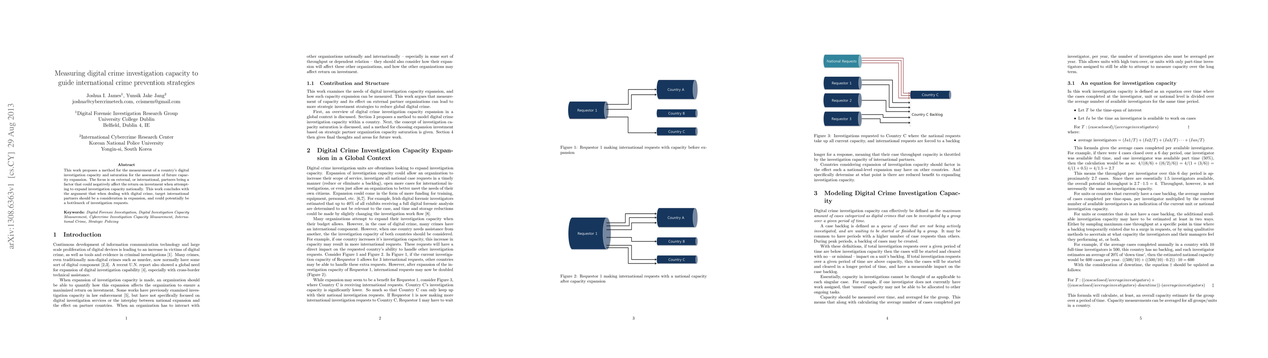 This paper introduces a method for evaluating a country's digital crime investigation capacity, emphasizing the role of international partners as potential bottlenecks in capacity expansion. It argues that international cooperation should be considered to optimize investment returns in digital crime prevention strategies.