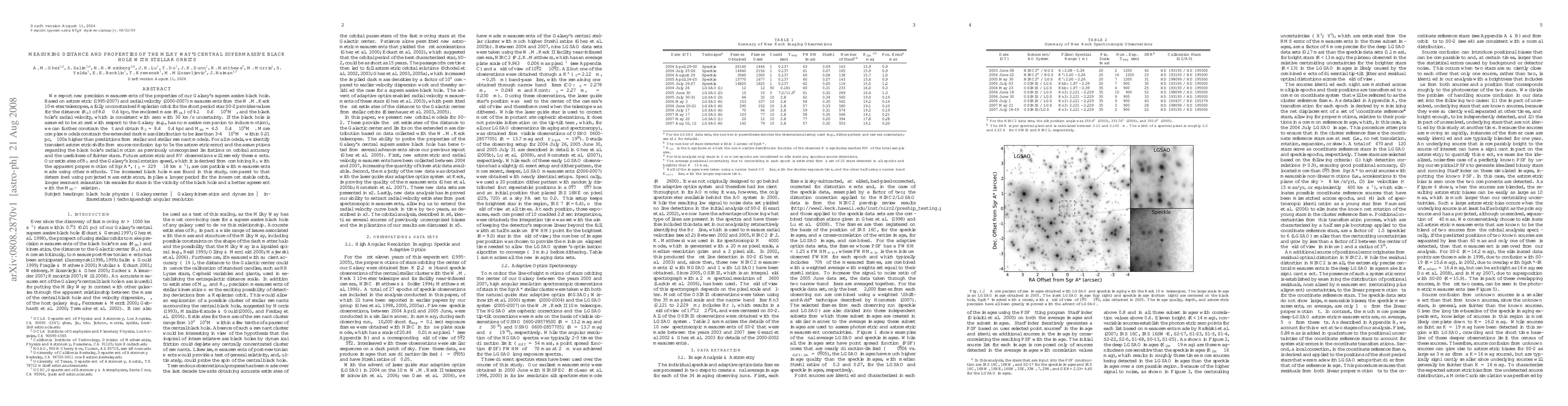 We report new precision measurements of the properties of our Galaxy's supermassive black hole. Based on astrometric (1995-2007) and radial velocity (2000-2007) measurements from the W. M. Keck 10-meter telescopes, a fully unconstrained Keplerian orbit for the short period star S0-2 provides values for Ro of 8.0+-0.6 kpc, M_bh of 4.1+-0.6x10^6 Mo, and the black hole's radial velocity, which is consistent with zero with 30 km/s uncertainty. If the black hole is assumed to be at rest with respect to the Galaxy, we can further constrain the fit and obtain Ro = 8.4+-0.4 kpc and M_bh = 4.5+-0.4x10^6 Mo. More complex models constrain the extended dark mass distribution to be less than 3-4x10^5 Mo within 0.01 pc, ~100x higher than predictions from stellar and stellar remnant models. For all models, we identify transient astrometric shifts from source confusion and the assumptions regarding the black hole's radial motion as previously unrecognized limitations on orbital accuracy and the usefulness of fainter stars. Future astrometric and RV observations will remedy these effects. Our estimates of Ro and the Galaxy's local rotation speed, which it is derived from combining Ro with the apparent proper motion of Sgr A*, (theta0 = 229+-18 km/s), are compatible with measurements made using other methods. The increased black hole mass found in this study, compared to that determined using projected mass estimators, implies a longer period for the innermost stable orbit, longer resonant relaxation timescales for stars in the vicinity of the black hole and a better agreement with the M_bh-sigma relation.