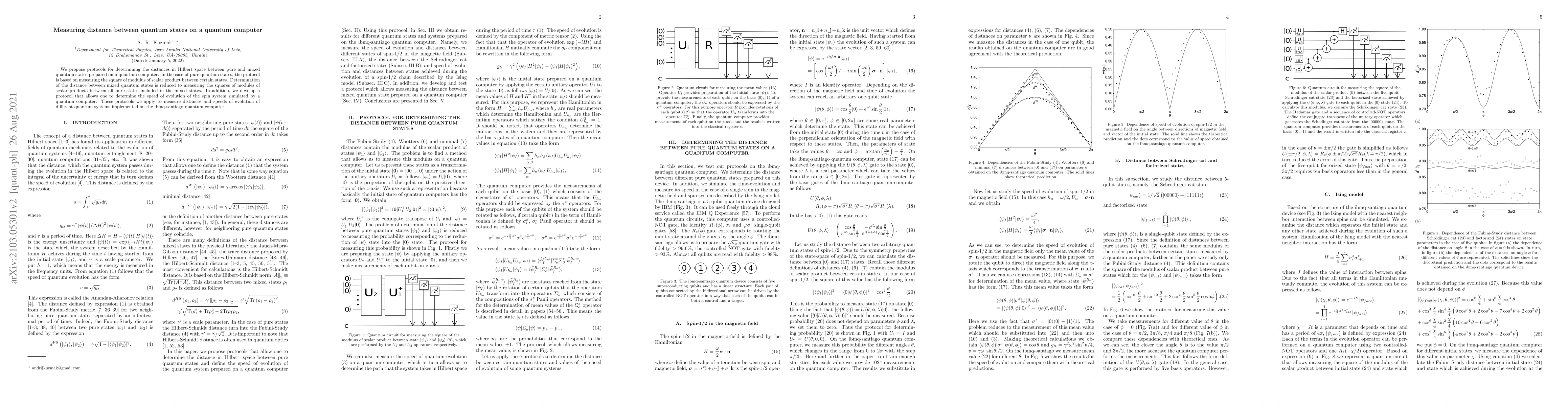 Researchers developed protocols to measure distances between quantum states on a quantum computer, allowing for calculations of purity and evolution speeds.