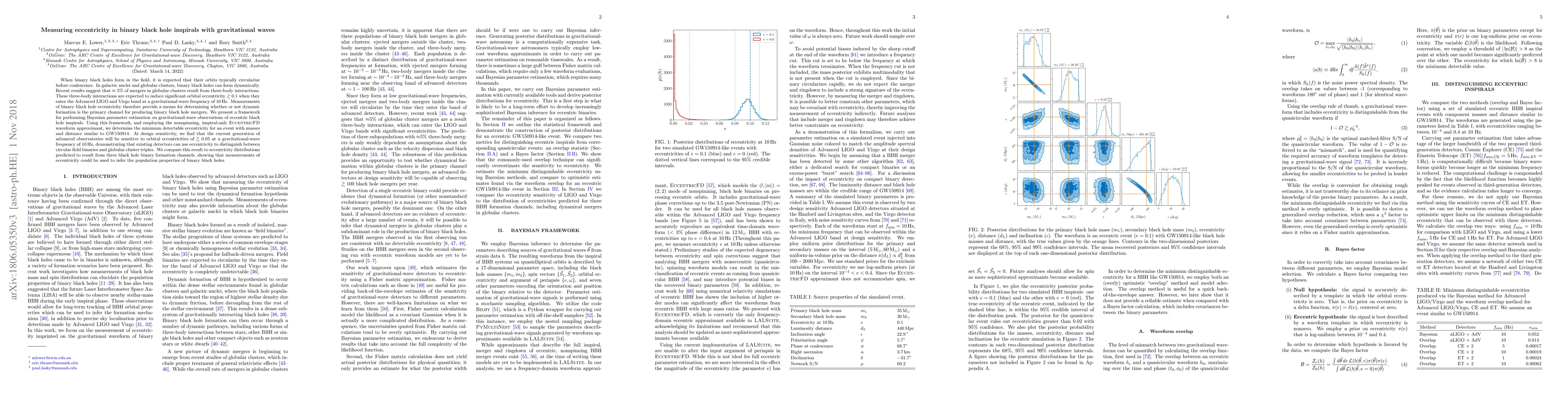 When binary black holes form in the field, it is expected that their orbits typically circularize before coalescence. In galactic nuclei and globular clusters, binary black holes can form dynamically. Recent results suggest that $\approx5\%$ of mergers in globular clusters result from three-body interactions. These three-body interactions are expected to induce significant orbital eccentricity $\gtrsim 0.1$ when they enter the Advanced LIGO band at a gravitational-wave frequency of 10 Hz. Measurements of binary black hole eccentricity therefore provide a means for determining whether or not dynamic formation is the primary channel for producing binary black hole mergers. We present a framework for performing Bayesian parameter estimation on gravitational-wave observations of black hole inspirals. Using this framework, and employing the non-spinning, inspiral-only EccentricFD waveform approximant, we determine the minimum detectable eccentricity for an event with masses and distance similar to GW150914. At design sensitivity, we find that the current generation of advanced observatories will be sensitive to orbital eccentricities of $\gtrsim0.05$ at a gravitational-wave frequency of 10 Hz, demonstrating that existing detectors can use eccentricity to distinguish between circular field binaries and globular cluster triples. We compare this result to eccentricity distributions predicted to result from three black hole binary formation channels, showing that measurements of eccentricity could be used to infer the population properties of binary black holes.