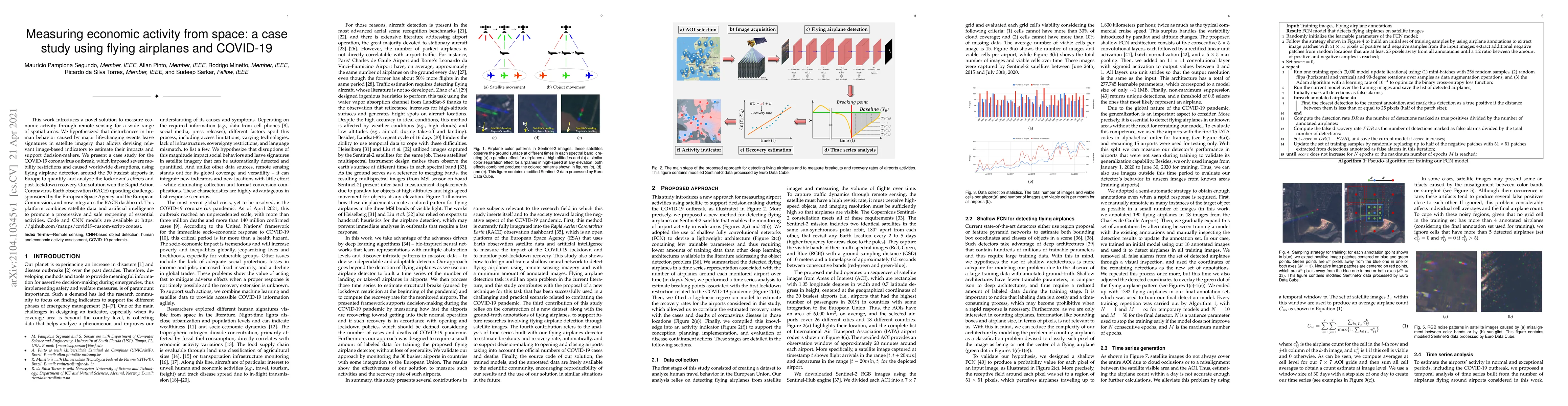 This work introduces a novel solution to measure economic activity through remote sensing for a wide range of spatial areas. We hypothesized that disturbances in human behavior caused by major life-changing events leave signatures in satellite imagery that allows devising relevant image-based indicators to estimate their impacts and support decision-makers. We present a case study for the COVID-19 coronavirus outbreak, which imposed severe mobility restrictions and caused worldwide disruptions, using flying airplane detection around the 30 busiest airports in Europe to quantify and analyze the lockdown's effects and post-lockdown recovery. Our solution won the Rapid Action Coronavirus Earth observation (RACE) upscaling challenge, sponsored by the European Space Agency and the European Commission, and now integrates the RACE dashboard. This platform combines satellite data and artificial intelligence to promote a progressive and safe reopening of essential activities. Code and CNN models are available at https://github.com/maups/covid19-custom-script-contest