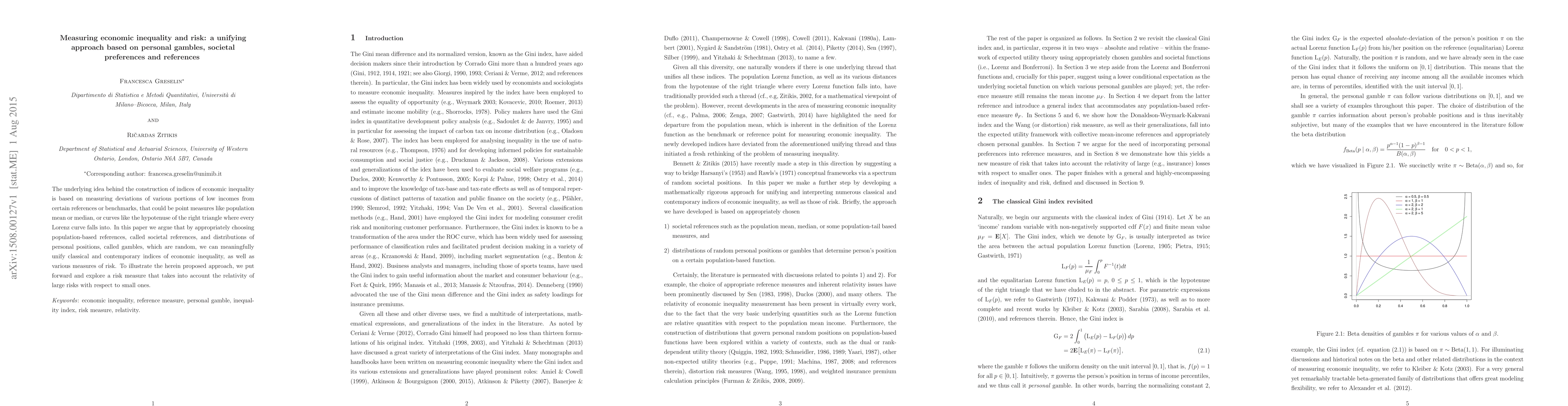 This paper proposes a unified approach to measuring economic inequality and risk using personal gambles and societal references, aiming to reconcile classical and contemporary indices of economic inequality.