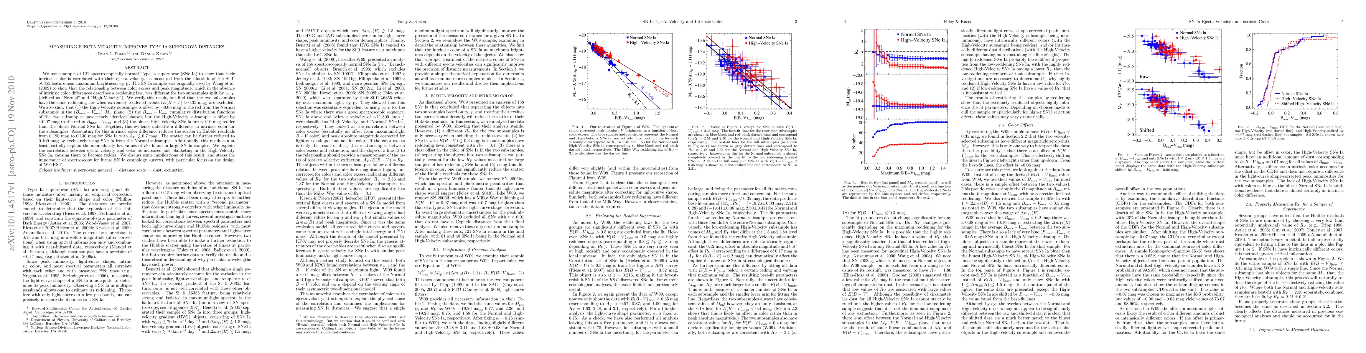 A study of 121 Type Ia supernovae reveals that their intrinsic color is correlated with ejecta velocity, improving distance measurements and reducing scatter in Hubble residuals.