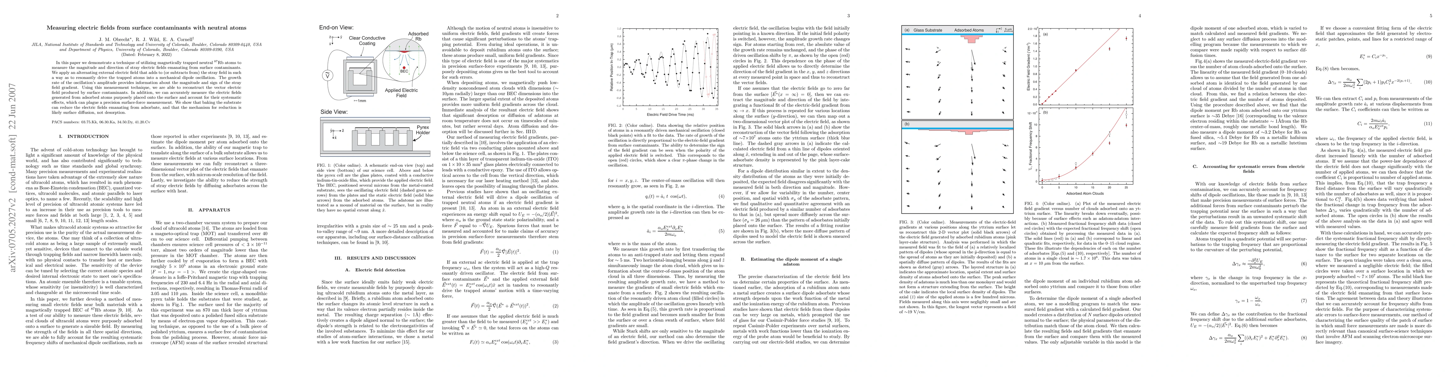 In this paper we demonstrate a technique of utilizing magnetically trapped neutral Rb-87 atoms to measure the magnitude and direction of stray electric fields emanating from surface contaminants. We apply an alternating external electric field that adds to (or subtracts from) the stray field in such a way as to resonantly drive the trapped atoms into a mechanical dipole oscillation. The growth rate of the oscillation's amplitude provides information about the magnitude and sign of the stray field gradient. Using this measurement technique, we are able to reconstruct the vector electric field produced by surface contaminants. In addition, we can accurately measure the electric fields generated from adsorbed atoms purposely placed onto the surface and account for their systematic effects, which can plague a precision surface-force measurement. We show that baking the substrate can reduce the electric fields emanating from adsorbate, and that the mechanism for reduction is likely surface diffusion, not desorption.