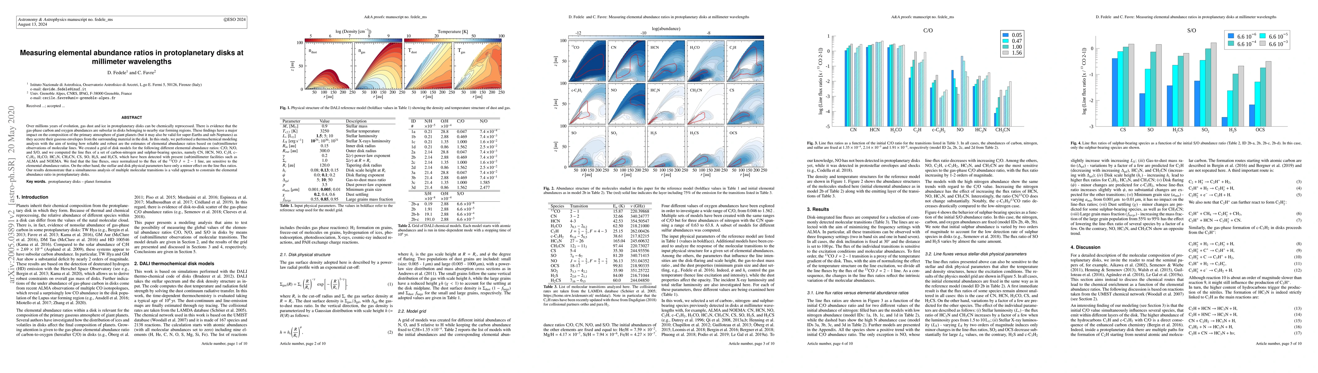 This study investigates the elemental abundance ratios in protoplanetary disks using thermo-chemical modelling and millimeter observations. The research finds that molecular line flux ratios, normalized to $^{13}$CO, are sensitive to C/O, N/O, and S/O ratios, suggesting that multiple molecular transitions can reliably constrain these ratios despite minor effects from stellar and disk physical parameters.