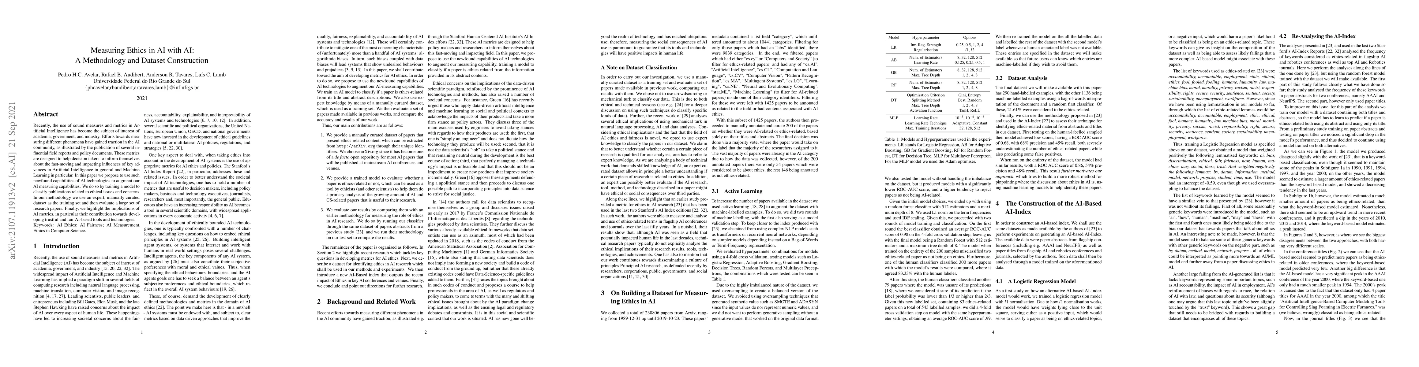 This paper proposes using AI to measure ethics in AI by training a model to classify publications on ethical issues, utilizing a manually curated dataset for training. The methodology aims to develop trustful and fair AI technologies, highlighting the implications of AI metrics in fostering responsible AI advancements.