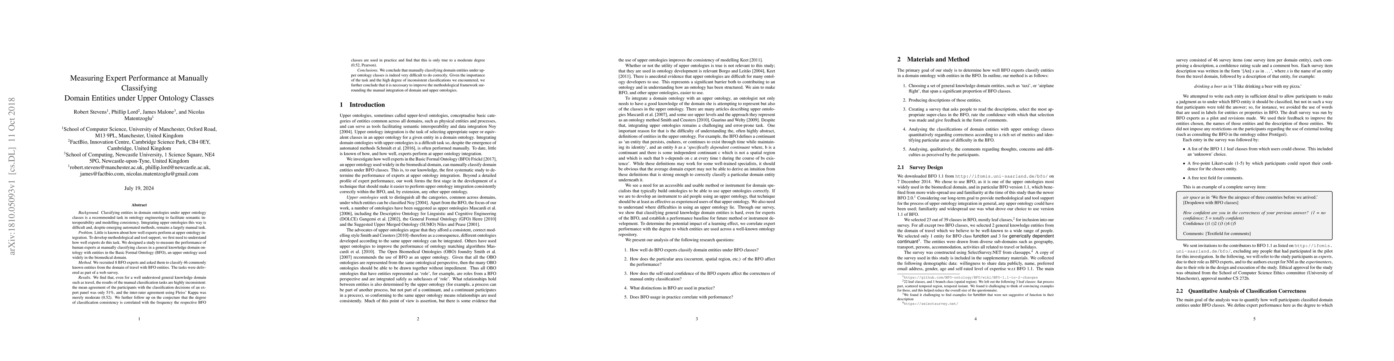 Classifying entities in domain ontologies under upper ontology classes is a recommended task in ontology engineering to facilitate semantic interoperability and modelling consistency. Integrating upper ontologies this way is difficult and, despite emerging automated methods, remains a largely manual task. Little is known about how well experts perform at upper ontology integration. To develop methodological and tool support, we first need to understand how well experts do this task. We designed a study to measure the performance of human experts at manually classifying classes in a general knowledge domain ontology with entities in the Basic Formal Ontology (BFO), an upper ontology used widely in the biomedical domain. We conclude that manually classifying domain entities under upper ontology classes is indeed very difficult to do correctly. Given the importance of the task and the high degree of inconsistent classifications we encountered, we further conclude that it is necessary to improve the methodological framework surrounding the manual integration of domain and upper ontologies.