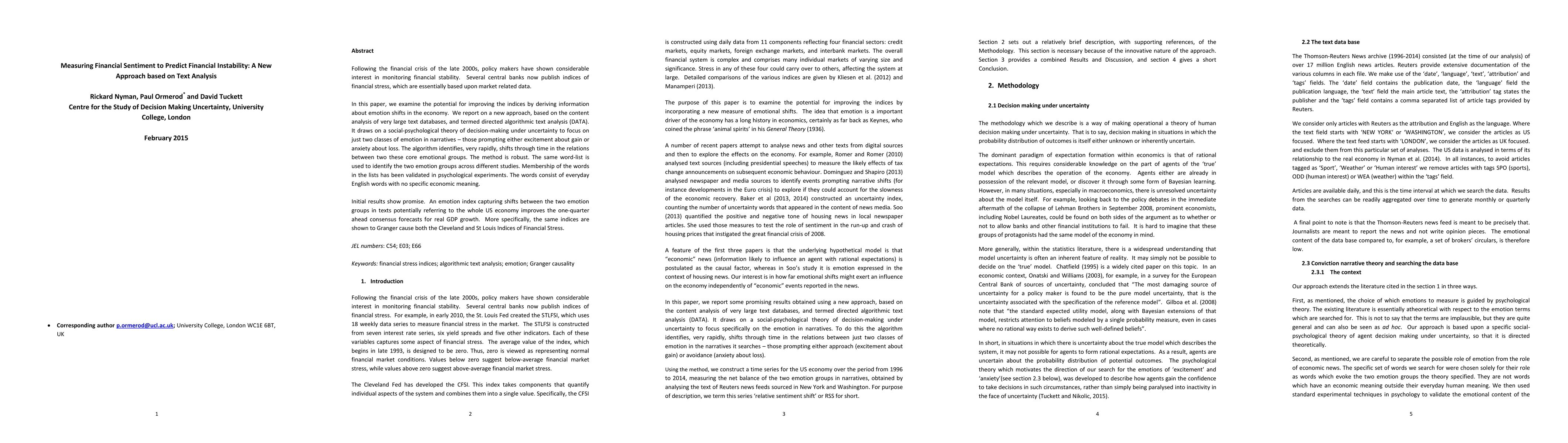 A new approach using text analysis improves financial stability forecasts by capturing shifts in economic emotions, outperforming existing indices in predicting real GDP growth.