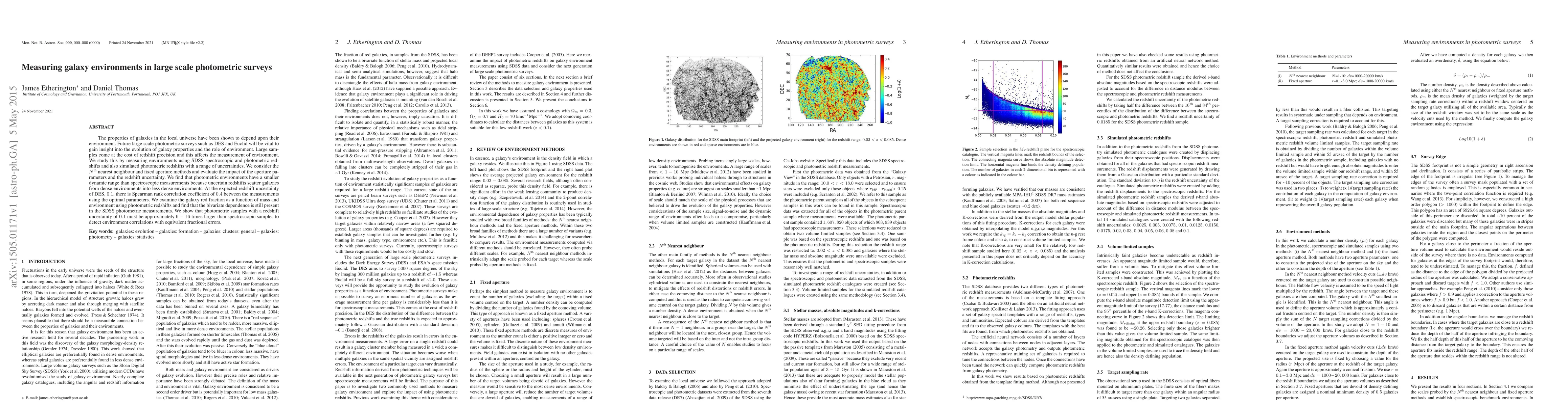 This paper investigates how large scale photometric surveys impact the measurement of galaxy environments, comparing spectroscopic and photometric redshifts. It finds that photometric environments have a smaller dynamic range due to redshift uncertainties, necessitating larger samples to detect environment correlations with equivalent accuracy.