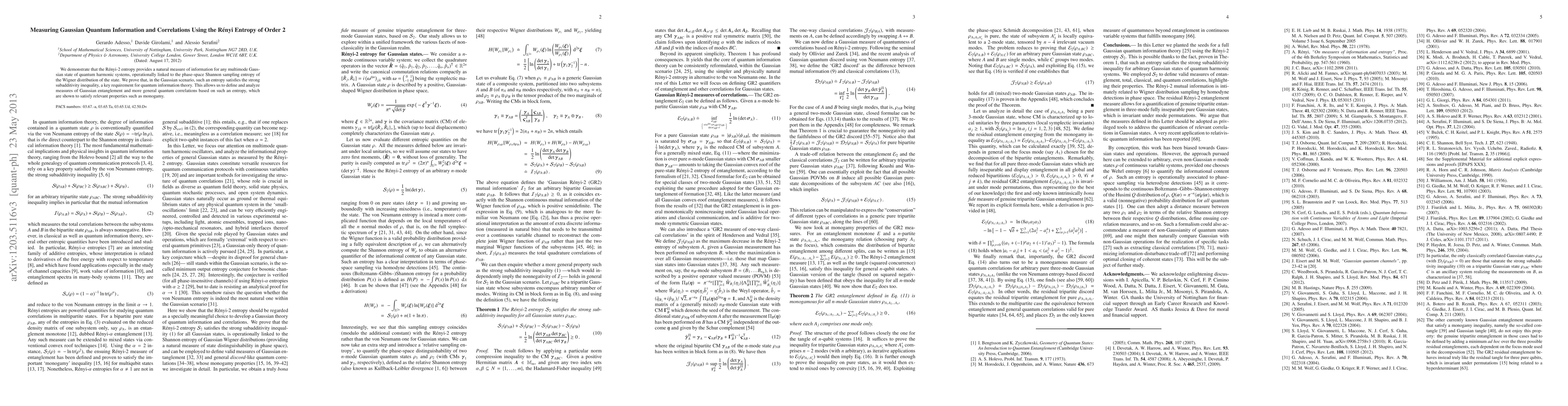 The Renyi-2 entropy is shown to effectively measure Gaussian quantum information and correlations in multimode quantum harmonic systems, linked to the phase-space Shannon sampling entropy. It satisfies the strong subadditivity inequality, enabling the definition and analysis of Gaussian entanglement and quantum correlations with properties like monogamy.
