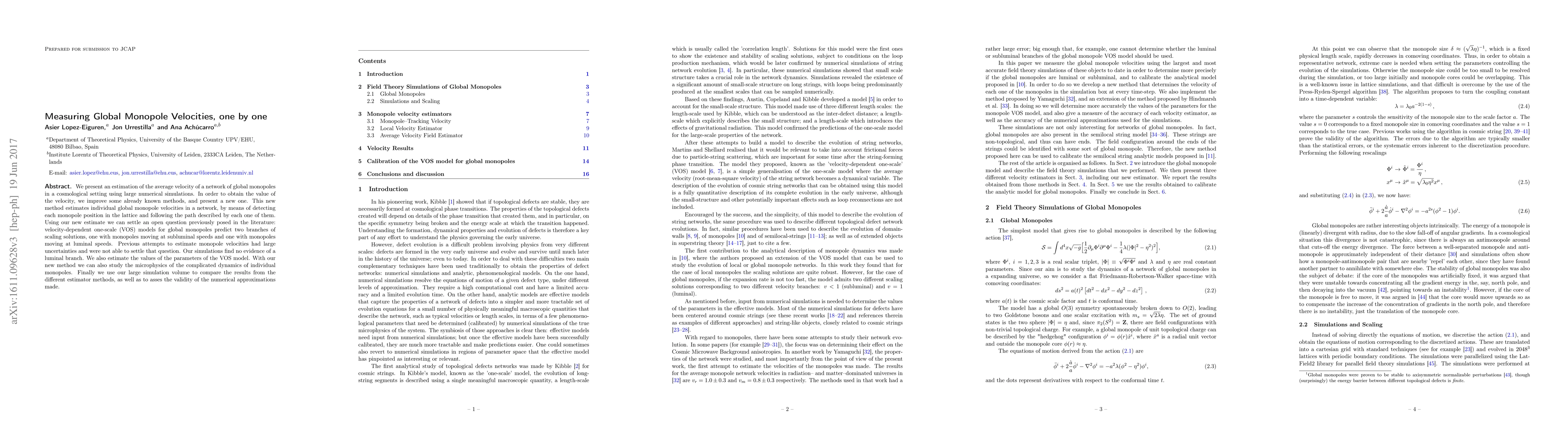 We present an estimation of the average velocity of a network of global monopoles in a cosmological setting using large numerical simulations. In order to obtain the value of the velocity, we improve some already known methods, and present a new one. This new method estimates individual global monopole velocities in a network, by means of detecting each monopole position in the lattice and following the path described by each one of them. Using our new estimate we can settle an open question previously posed in the literature: velocity-dependent one-scale (VOS) models for global monopoles predict two branches of scaling solutions, one with monopoles moving at subluminal speeds and one with monopoles moving at luminal speeds. Previous attempts to estimate monopole velocities had large uncertainties and were not able to settle that question. Our simulations find no evidence of a luminal branch. We also estimate the values of the parameters of the VOS model. With our new method we can also study the microphysics of the complicated dynamics of individual monopoles. Finally we use our large simulation volume to compare the results from the different estimator methods, as well as to asses the validity of the numerical approximations made.