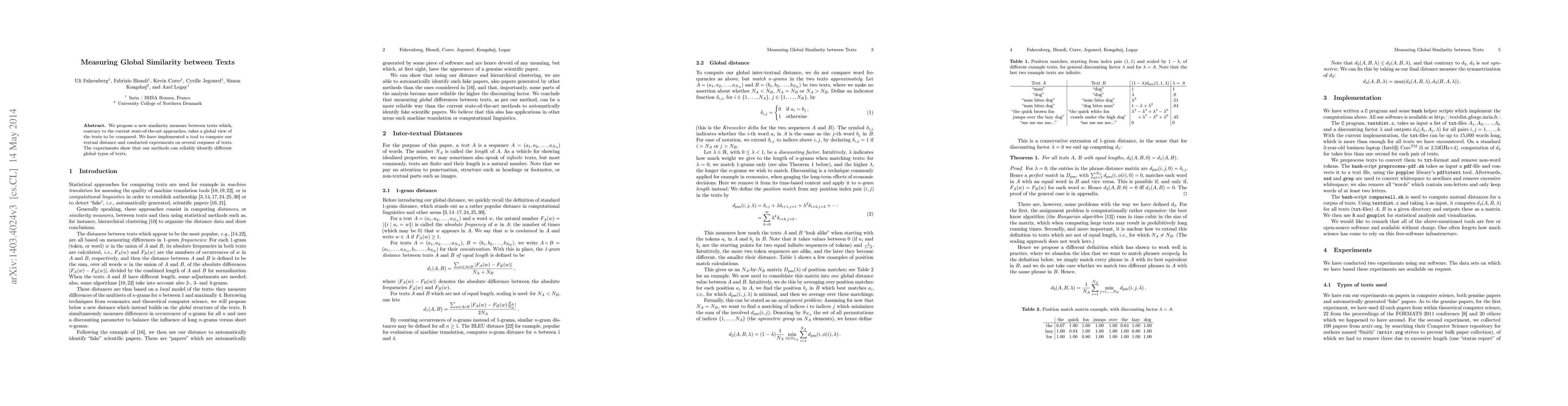 A new similarity measure between texts is proposed, taking a global view of comparisons to identify different types of texts with high reliability. This approach shows promise in distinguishing various text genres.