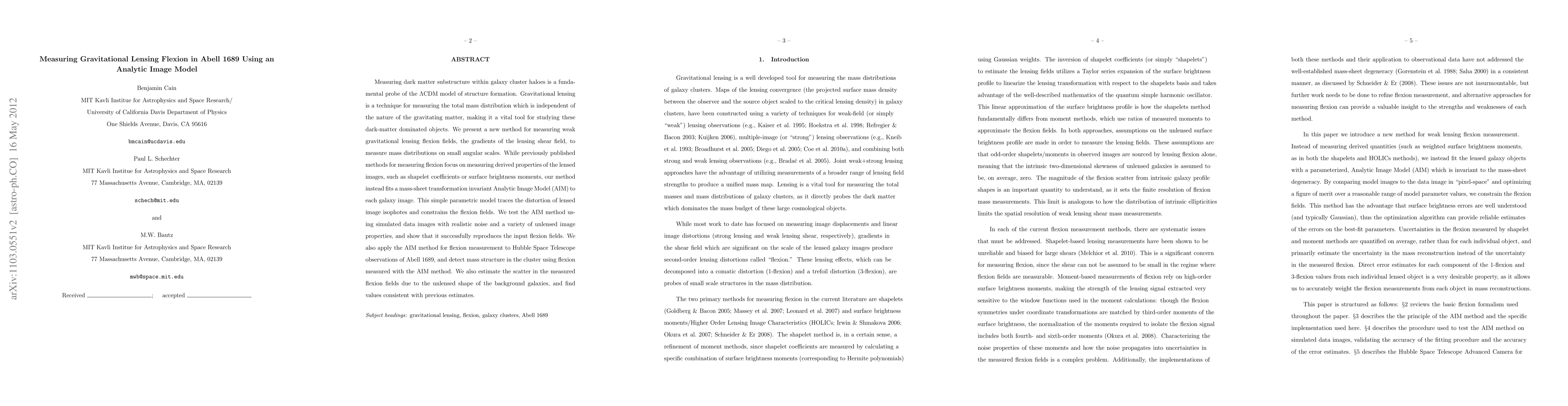 This paper introduces a new method for measuring weak gravitational lensing flexions using an Analytic Image Model (AIM) to trace lensed image distortions, providing a mass-sheet-transformation-invariant approach. The method is tested on simulated data and applied to Hubble Space Telescope observations of Abell 1689, successfully detecting mass structure within the cluster.