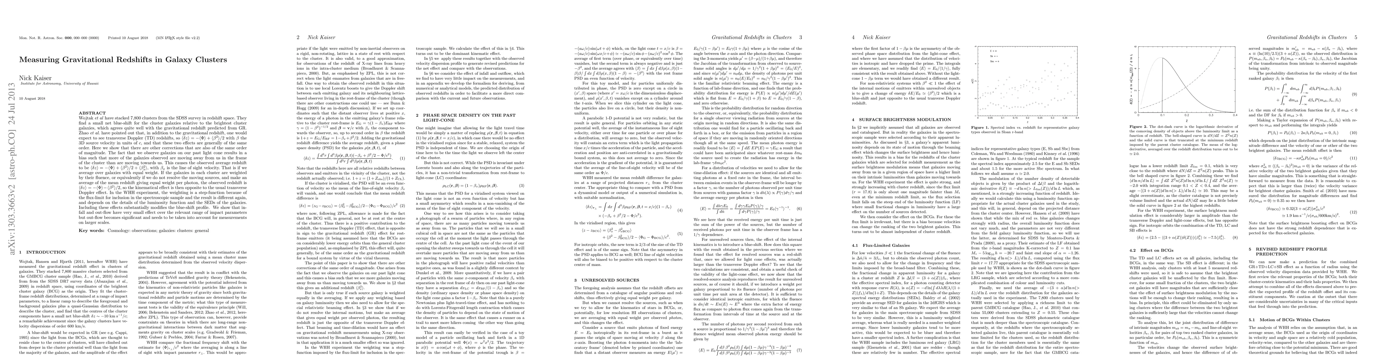 Researchers studied gravitational redshifts in galaxy clusters using 7,800 clusters from the SDSS survey. They found a small blue-shift effect that agrees with general relativity predictions, but also discovered additional corrections to the observed redshift, including a bias due to galaxies moving away or towards us.