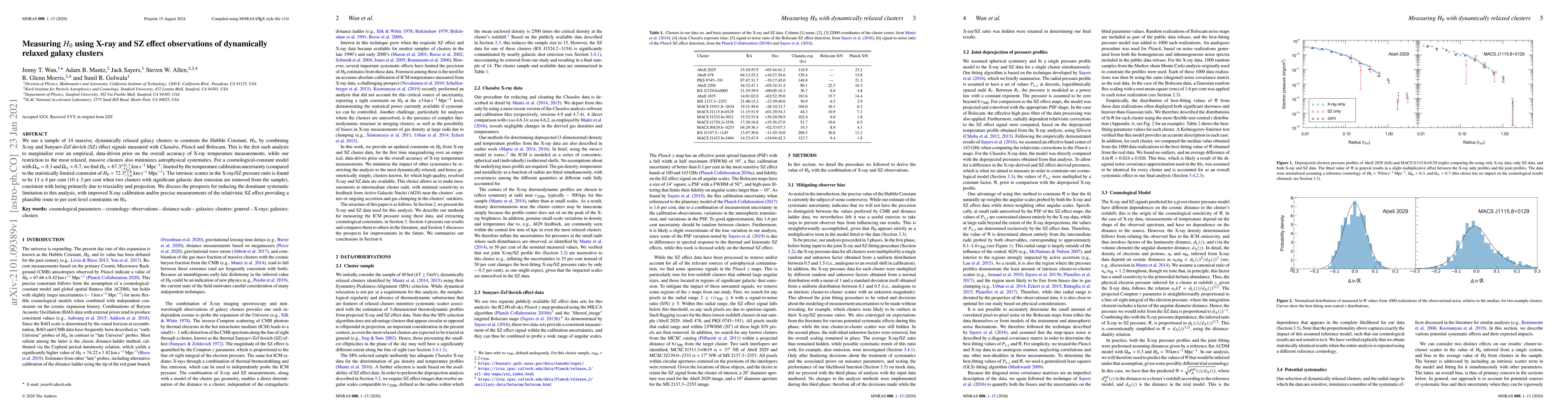 This study uses X-ray and Sunyaev-Zel'dovich effect observations of 14 massive, dynamically relaxed galaxy clusters to constrain the Hubble Constant, $H_0$, finding $H_0 = 67.3^{+21.3}_{-13.3}$ km/s/Mpc, primarily limited by X-ray temperature measurement uncertainties. The intrinsic scatter in the X-ray/SZ pressure ratio is consistent with being due to cluster shape and projection effects.
