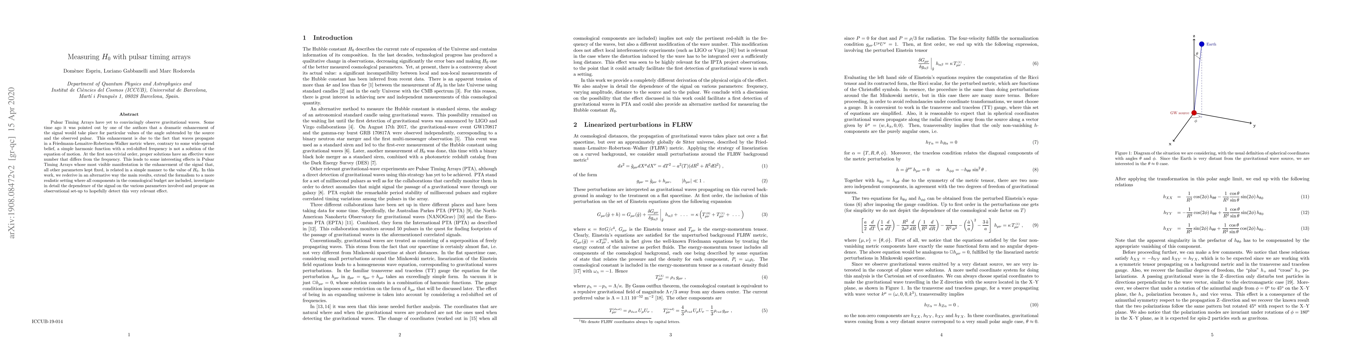 This paper explores how Pulsar Timing Arrays can measure the Hubble constant ($H_0$) through signal enhancement due to gravitational wave propagation in a Friedmann-Lemaitre-Robertson-Walker metric. The authors propose an observational setup to detect this effect, extending the formalism to include all cosmological components.