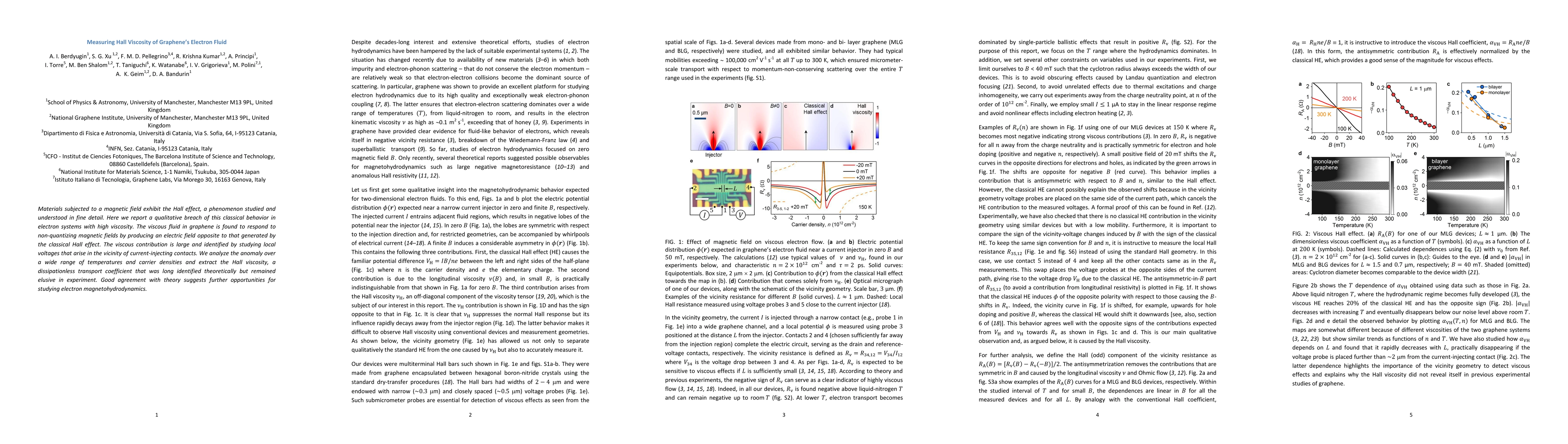 This study reveals a deviation from classical Hall effect behavior in graphene's electron fluid under high viscosity, showing an electric field opposite to the classical prediction. The researchers identify and measure the elusive Hall viscosity through local voltage analysis, finding good theoretical agreement.