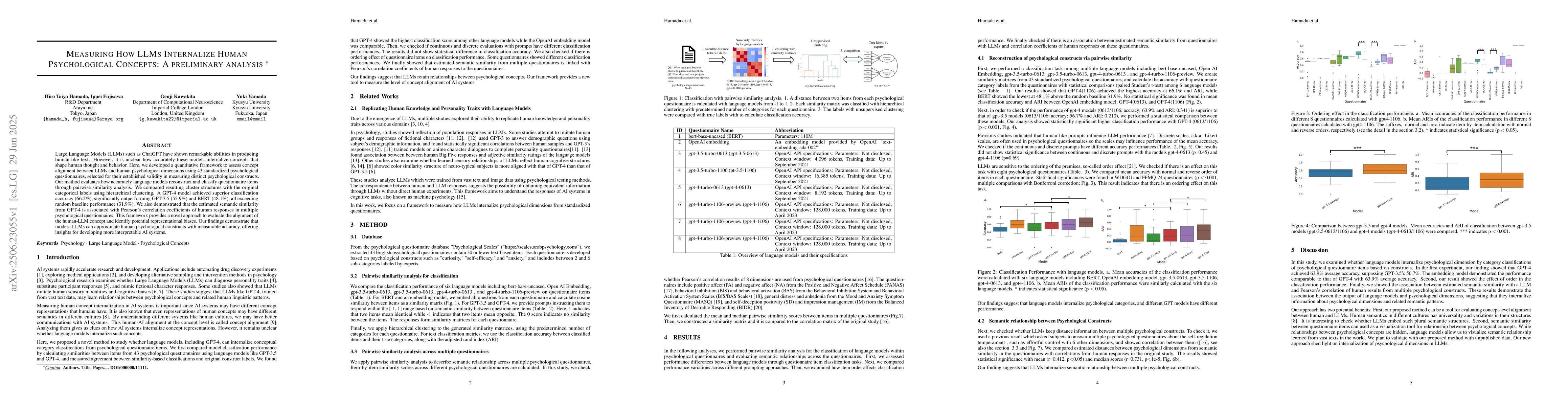 Large Language Models (LLMs) such as ChatGPT have shown remarkable abilities in producing human-like text. However, it is unclear how accurately these models internalize concepts that shape human thought and behavior. Here, we developed a quantitative framework to assess concept alignment between LLMs and human psychological dimensions using 43 standardized psychological questionnaires, selected for their established validity in measuring distinct psychological constructs. Our method evaluates how accurately language models reconstruct and classify questionnaire items through pairwise similarity analysis. We compared resulting cluster structures with the original categorical labels using hierarchical clustering. A GPT-4 model achieved superior classification accuracy (66.2\%), significantly outperforming GPT-3.5 (55.9\%) and BERT (48.1\%), all exceeding random baseline performance (31.9\%). We also demonstrated that the estimated semantic similarity from GPT-4 is associated with Pearson's correlation coefficients of human responses in multiple psychological questionnaires. This framework provides a novel approach to evaluate the alignment of the human-LLM concept and identify potential representational biases. Our findings demonstrate that modern LLMs can approximate human psychological constructs with measurable accuracy, offering insights for developing more interpretable AI systems.