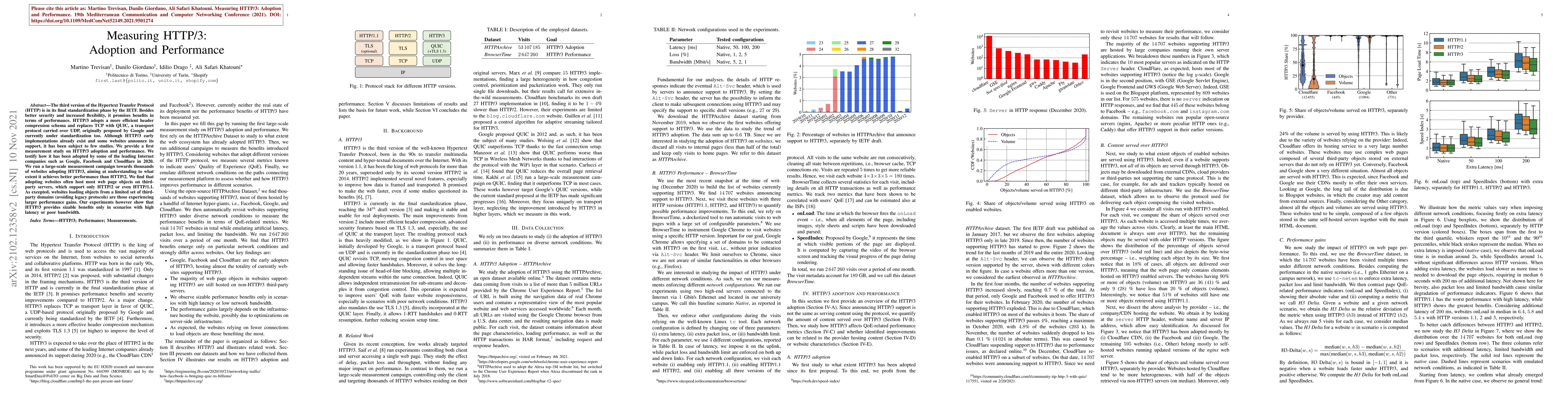 This paper conducts a large-scale measurement study on HTTP/3 adoption and performance, finding that while leading companies like Google and Facebook have adopted it, HTTP/3 offers significant performance benefits mainly in high latency or low bandwidth scenarios, but not in high packet loss conditions.