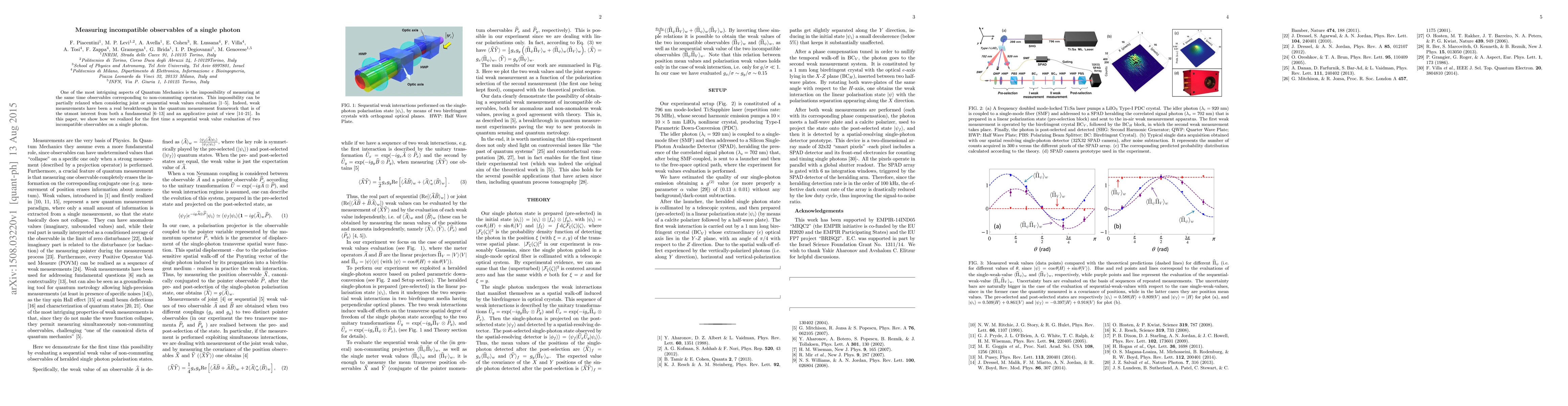 One of the most intriguing aspects of Quantum Mechanics is the impossibility of measuring at the same time observables corresponding to non-commuting operators. This impossibility can be partially relaxed when considering joint or sequential weak values evaluation. Indeed, weak measurements have been a real breakthrough in the quantum measurement framework that is of the utmost interest from both a fundamental and an applicative point of view. Here we show how we realized, for the first time, a sequential weak value evaluation of two incompatible observables on a single photon.