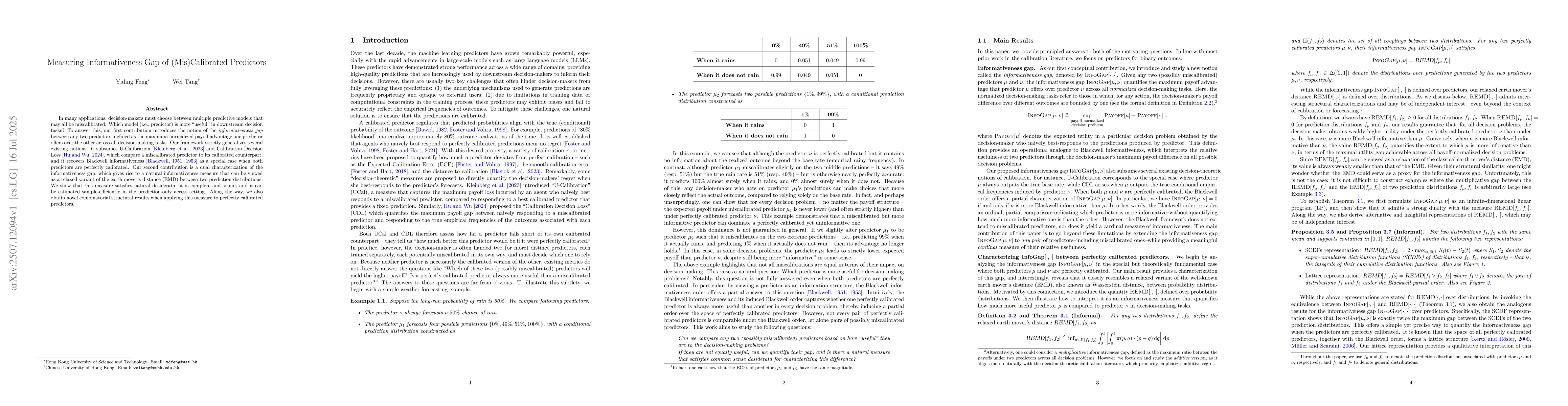 In many applications, decision-makers must choose between multiple predictive models that may all be miscalibrated. Which model (i.e., predictor) is more "useful" in downstream decision tasks? To answer this, our first contribution introduces the notion of the informativeness gap between any two predictors, defined as the maximum normalized payoff advantage one predictor offers over the other across all decision-making tasks. Our framework strictly generalizes several existing notions: it subsumes U-Calibration [KLST-23] and Calibration Decision Loss [HW-24], which compare a miscalibrated predictor to its calibrated counterpart, and it recovers Blackwell informativeness [Bla-51, Bla-53] as a special case when both predictors are perfectly calibrated. Our second contribution is a dual characterization of the informativeness gap, which gives rise to a natural informativeness measure that can be viewed as a relaxed variant of the earth mover's distance (EMD) between two prediction distributions. We show that this measure satisfies natural desiderata: it is complete and sound, and it can be estimated sample-efficiently in the prediction-only access setting. Along the way, we also obtain novel combinatorial structural results when applying this measure to perfectly calibrated predictors.
