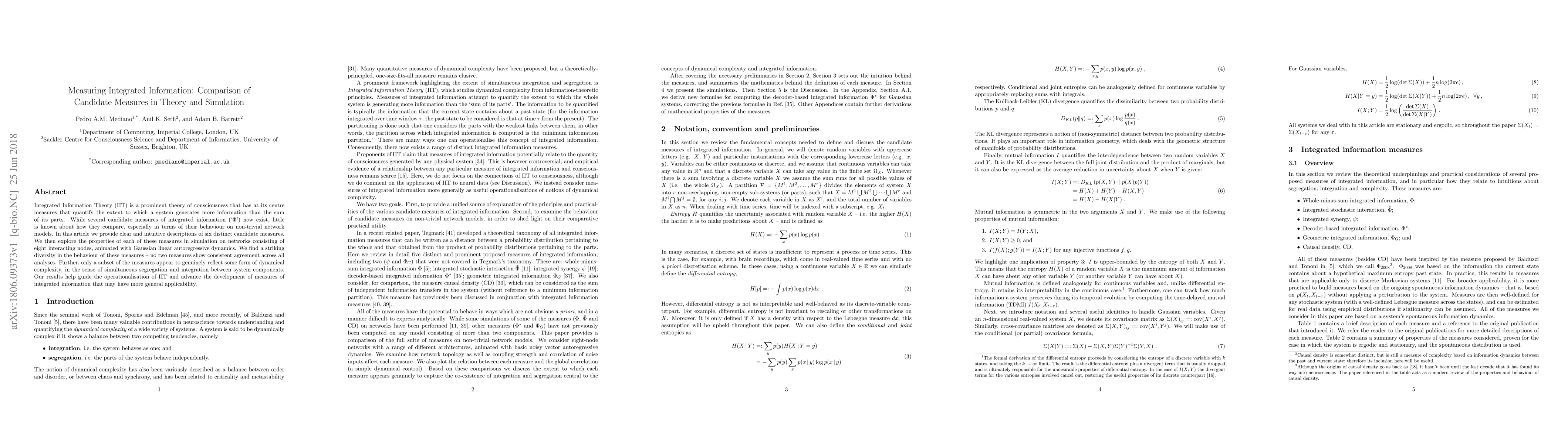 This paper compares six candidate measures of Integrated Information Theory (IIT) to quantify system information beyond the sum of its parts, finding significant diversity in their behavior across simulated network models. Only a subset reflects dynamical complexity, guiding the operationalization of IIT and the development of more applicable measures.