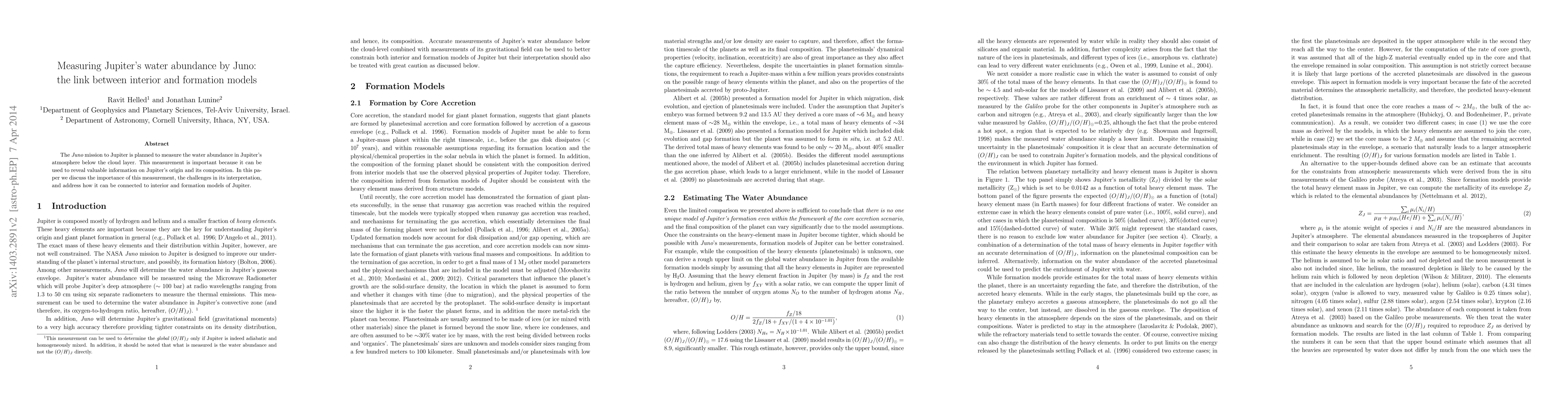 The Juno mission aims to measure Jupiter's atmospheric water abundance, providing insights into its origin and composition. This study discusses the significance of these measurements and how they link to models of Jupiter's interior and formation.