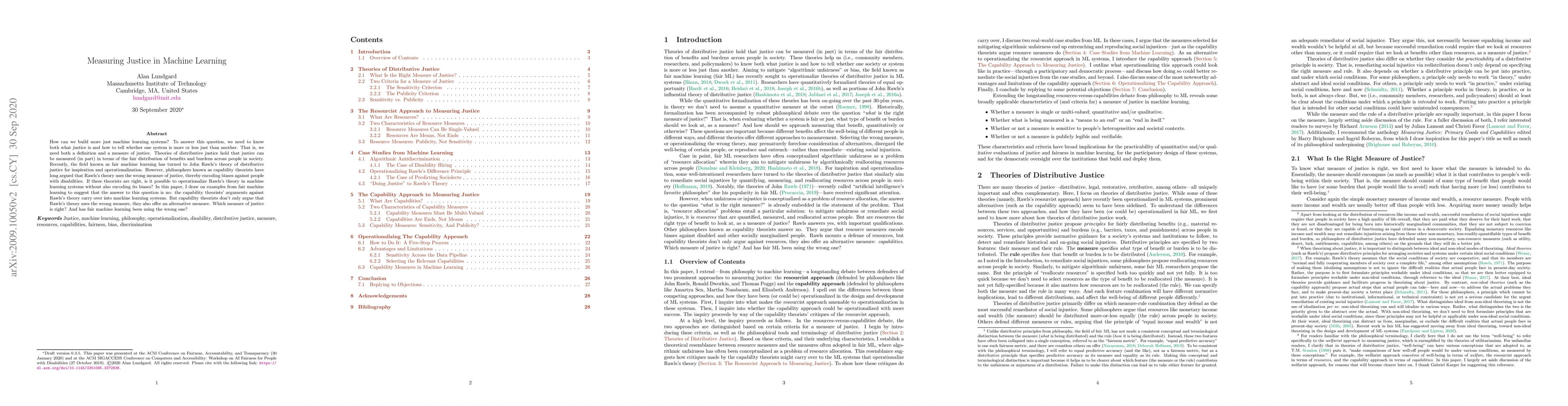 How can we build more just machine learning systems? To answer this question, we need to know both what justice is and how to tell whether one system is more or less just than another. That is, we need both a definition and a measure of justice. Theories of distributive justice hold that justice can be measured (in part) in terms of the fair distribution of benefits and burdens across people in society. Recently, the field known as fair machine learning has turned to John Rawls's theory of distributive justice for inspiration and operationalization. However, philosophers known as capability theorists have long argued that Rawls's theory uses the wrong measure of justice, thereby encoding biases against people with disabilities. If these theorists are right, is it possible to operationalize Rawls's theory in machine learning systems without also encoding its biases? In this paper, I draw on examples from fair machine learning to suggest that the answer to this question is no: the capability theorists' arguments against Rawls's theory carry over into machine learning systems. But capability theorists don't only argue that Rawls's theory uses the wrong measure, they also offer an alternative measure. Which measure of justice is right? And has fair machine learning been using the wrong one?