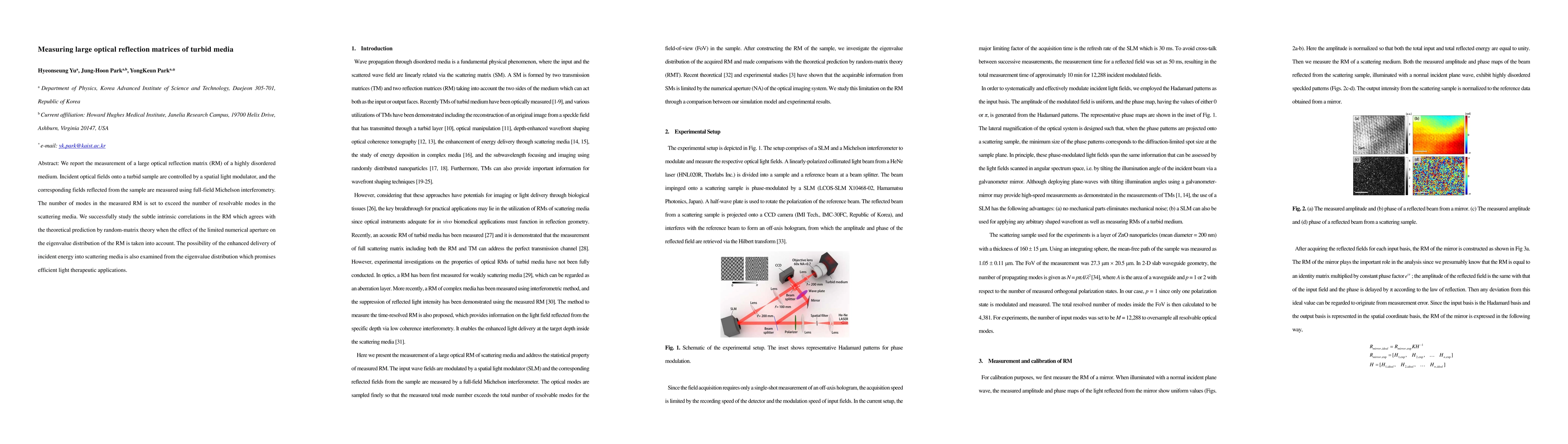 Researchers measured a large optical reflection matrix of a turbid medium using full-field Michelson interferometry, revealing subtle correlations that agree with theoretical predictions and potentially leading to more efficient light therapeutic applications.