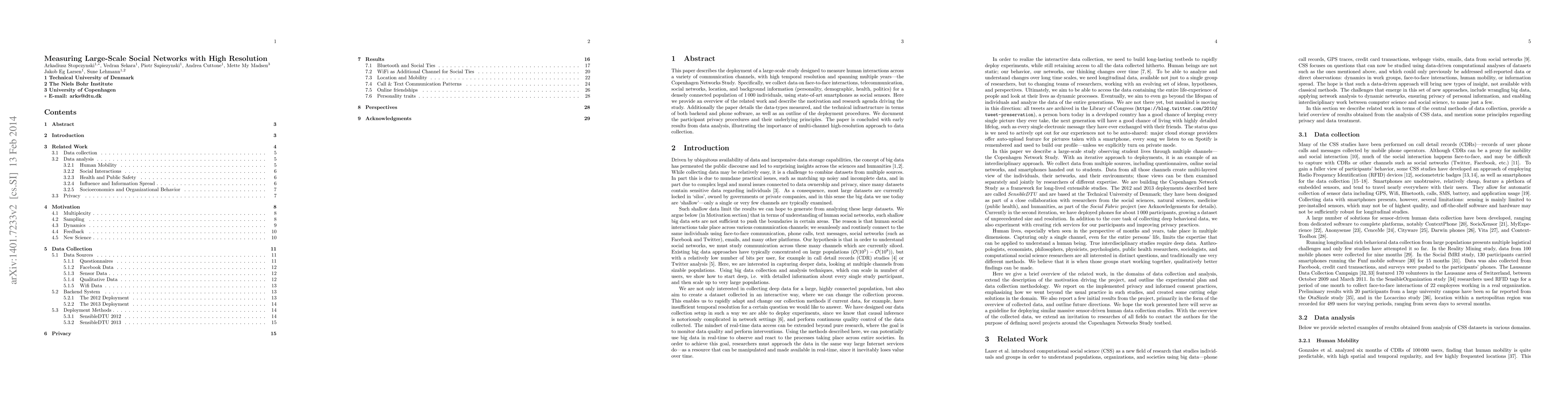 This paper presents a large-scale study of human interactions across multiple channels with high temporal resolution, using smartphones as social sensors to measure face-to-face interactions, communication, social networks, location, and background information for 1,000 individuals.