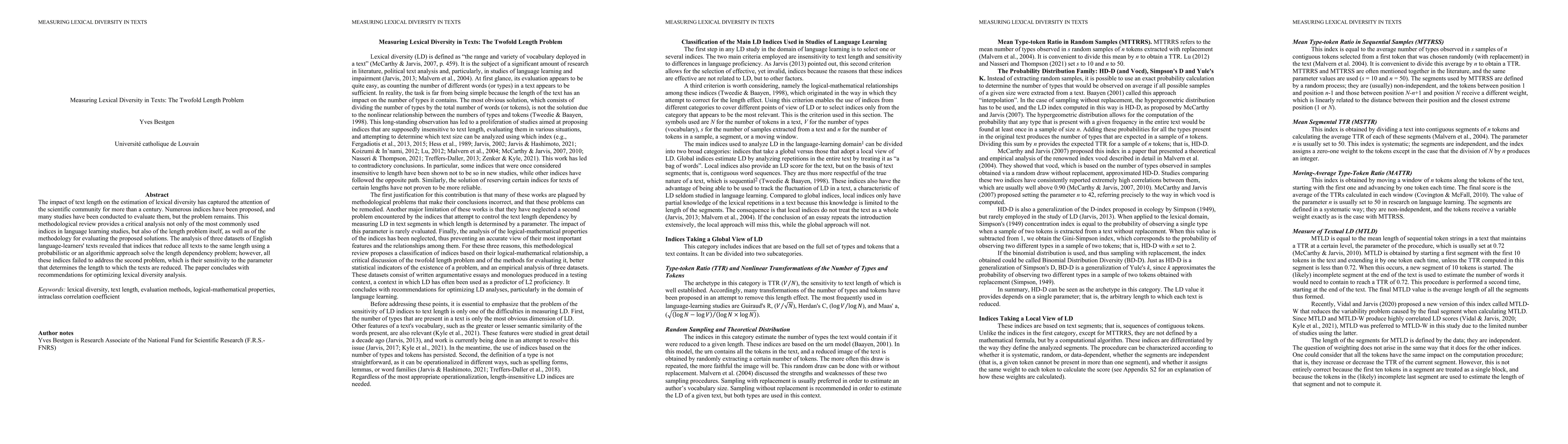 This paper critically examines indices used to measure lexical diversity in texts, highlighting the persistent issue of text length dependency. It finds that while methods adjusting text length can mitigate this issue, they remain sensitive to the chosen parameter for length reduction, suggesting a need for improved analytical approaches.