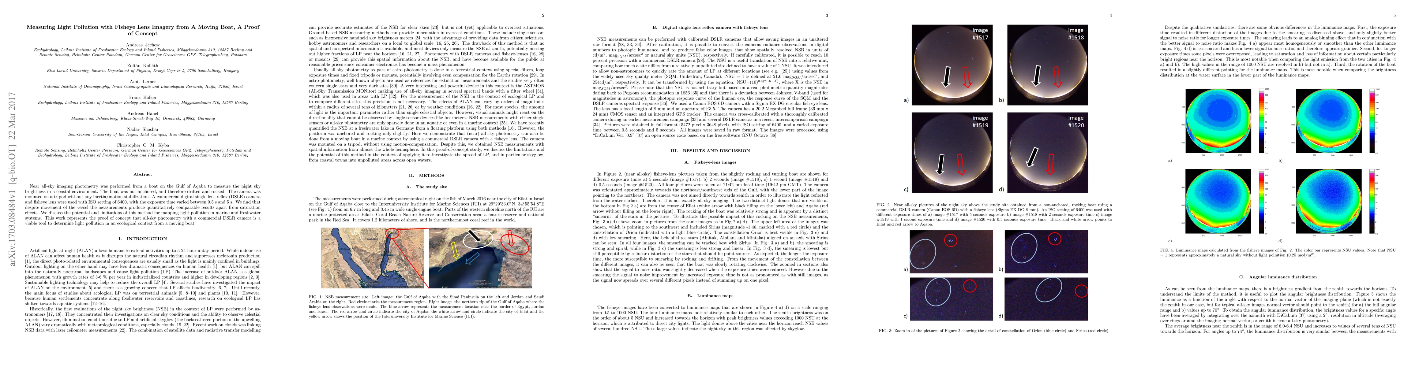 This study demonstrates the feasibility of using a commercial DSLR camera with a fisheye lens mounted on a moving boat to measure night sky brightness and assess light pollution, despite the vessel's drift and rocking. The results show comparable measurements, highlighting the potential of this method for ecological light pollution mapping.