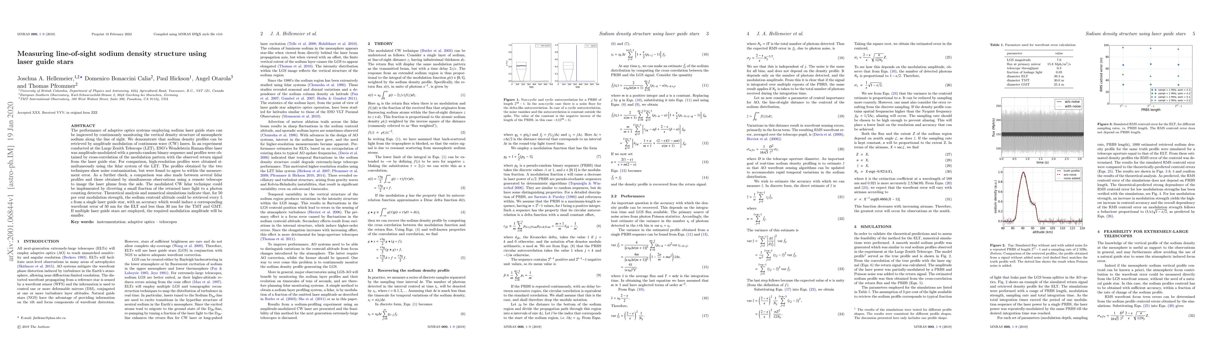 This paper demonstrates a method to measure the vertical density structure of mesospheric sodium using amplitude-modulated continuous wave lasers as laser guide stars, showing agreement with lidar profiles. The technique could enhance adaptive optics systems by retrieving sodium centroid altitudes every 5 seconds with sufficient accuracy for major telescopes.