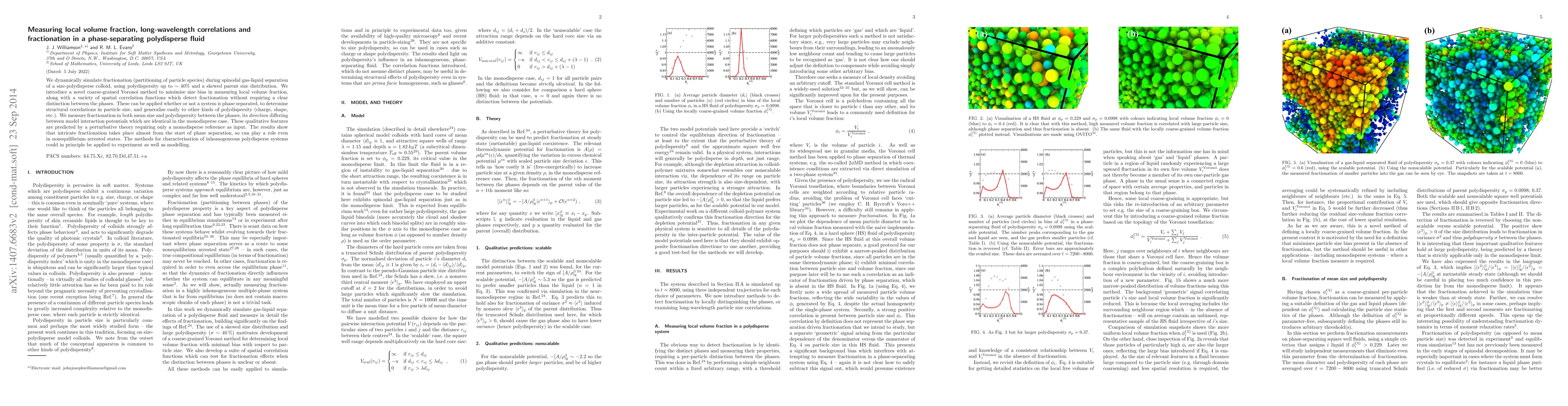 We dynamically simulate fractionation (partitioning of particle species) during spinodal gas-liquid separation of a size-polydisperse colloid, using polydispersity up to ~40% and a skewed parent size distribution. We introduce a novel coarse-grained Voronoi method to minimise size bias in measuring local volume fraction, along with a variety of spatial correlation functions which detect fractionation without requiring a clear distinction between the phases. These can be applied whether or not a system is phase separated, to determine structural correlations in particle size, and generalise easily to other kinds of polydispersity (charge, shape, etc.). We measure fractionation in both mean size and polydispersity between the phases, its direction differing between model interaction potentials which are identical in the monodisperse case. These qualitative features are predicted by a perturbative theory requiring only a monodisperse reference as input. The results show that intricate fractionation takes place almost from the start of phase separation, so can play a role even in nonequilibrium arrested states. The methods for characterisation of inhomogeneous polydisperse systems could in principle be applied to experiment as well as modelling.
