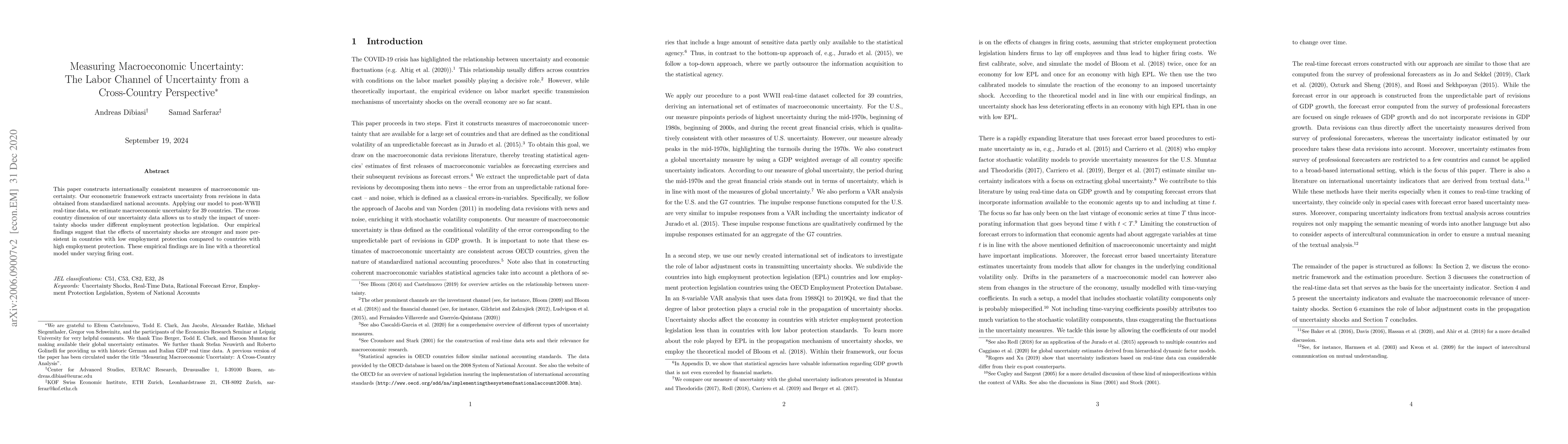 This paper develops consistent measures of macroeconomic uncertainty across 39 countries, revealing that uncertainty shocks have stronger and more persistent effects in nations with low employment protection compared to those with high employment protection, aligning with a theoretical model of varying firing costs.