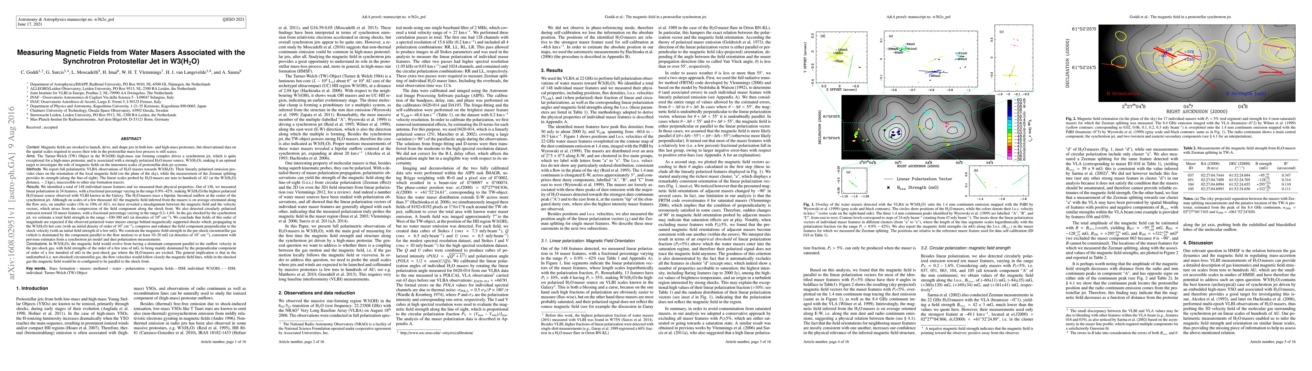 This paper reports on full polarimetric VLBA observations of water masers in the Turner-Welch Object's synchrotron jet, revealing a misalignment of magnetic fields on small scales compared to the flow axis. The study suggests that magnetic fields evolve from parallel to perpendicular configurations in the shocked gas, indicating a reconfiguration of magnetic fields in the circumstellar environment.
