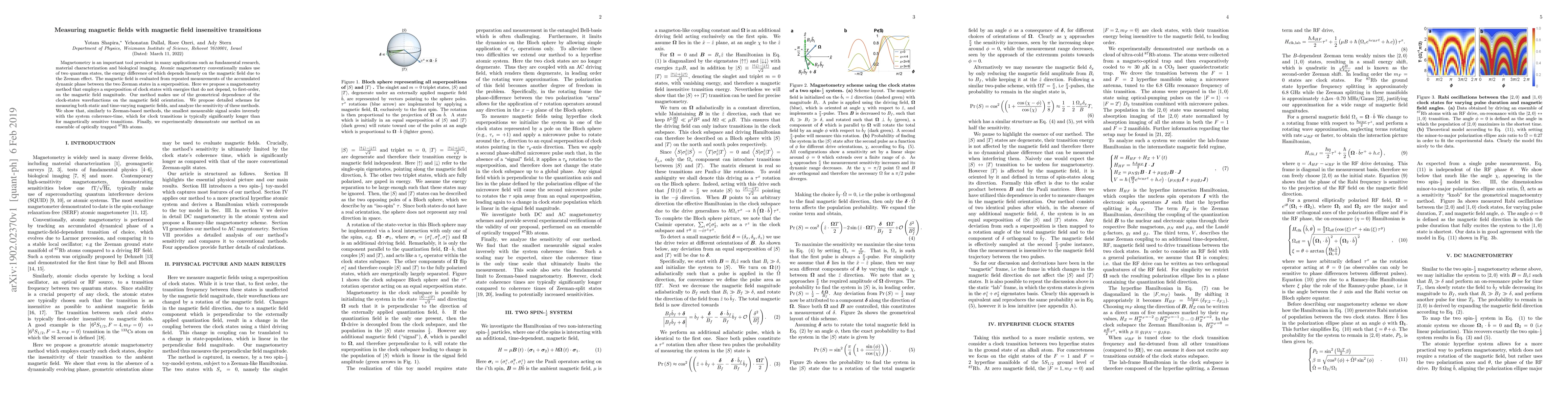 Magnetometry is an important tool prevalent in many applications such as fundamental research, material characterization and biological imaging. Atomic magnetometry conventionally makes use of two quantum states, the energy difference of which depends linearly on the magnetic field due to the Zeeman effect. The magnetic field is evaluated from repeated measurements of the accumulated dynamic phase between the two Zeeman states in a superposition. Here we propose a magnetometry method that employs a superposition of clock states with energies that do not depend, to first-order, on the magnetic field magnitude. Our method makes use of the geometrical dependence of the clock-states wavefunctions on the magnetic field orientation. We propose detailed schemes for measuring both static and time-varying magnetic fields, and analyze the sensitivity of these methods. We show that, similarly to Zeeman-based methods, the smallest measurable signal scales inversely with the system coherence-time, which for clock transitions is typically significantly longer than for magnetically sensitive transitions. Finally, we experimentally demonstrate our method on an ensemble of optically trapped 87Rb atoms.