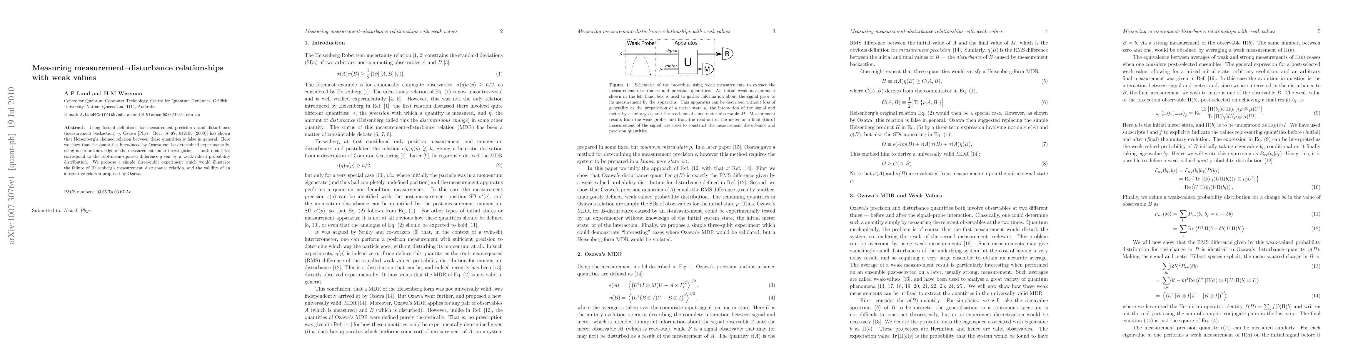 This paper demonstrates that measurement precision and disturbance can be experimentally determined through weak values, refuting Heisenberg's relation between them. A proposed three-qubit experiment aims to illustrate Ozawa's alternative measurement-disturbance relationship.