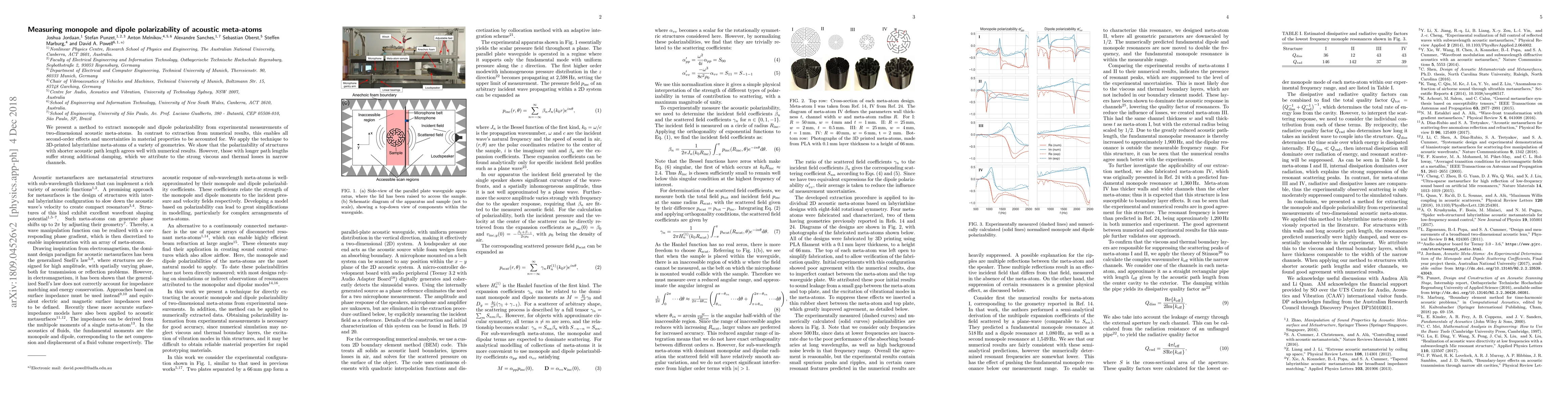 We present a method to extract monopole and dipole polarizability from experimental measurements of two-dimensional acoustic meta-atoms. In contrast to extraction from numerical results, this enables all second-order effects and uncertainties in material properties to be accounted for. We apply the technique to 3D-printed labyrinthine meta-atoms of a variety of geometries. We show that the polarizability of structures with shorter acoustic path length agrees well with numerical results. However, those with longer path lengths suffer strong additional damping, which we attribute to the strong viscous and thermal losses in narrow channels.