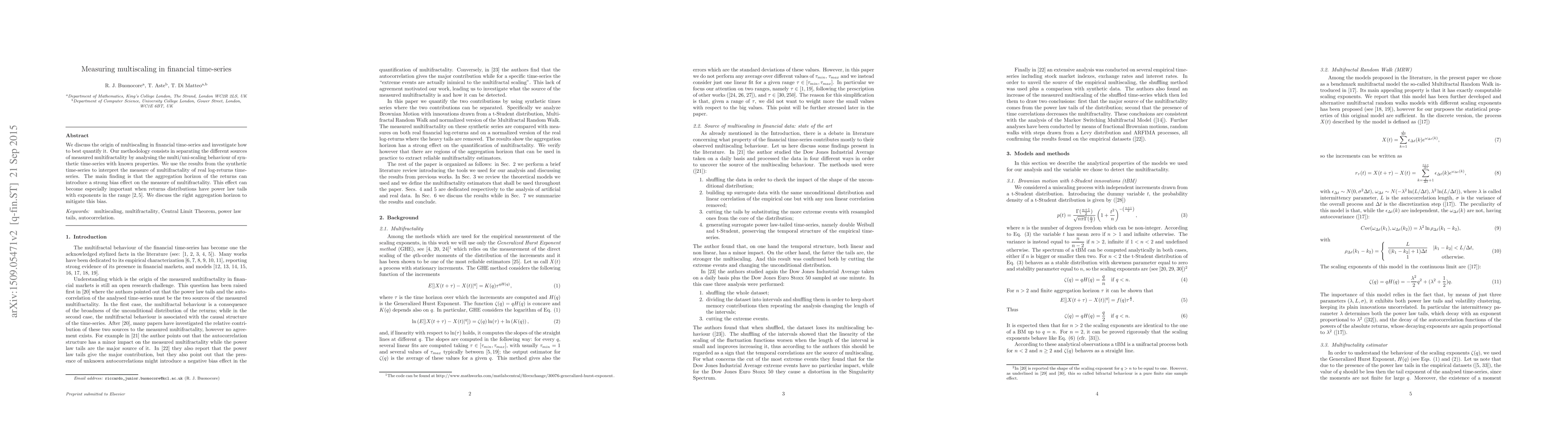 This paper explores the origin and quantification of multiscaling in financial time-series, employing synthetic time-series to separate sources of multifractality. It finds that the aggregation horizon significantly biases multifractality measures, especially for returns with power law tails, and recommends an optimal horizon to mitigate this bias.