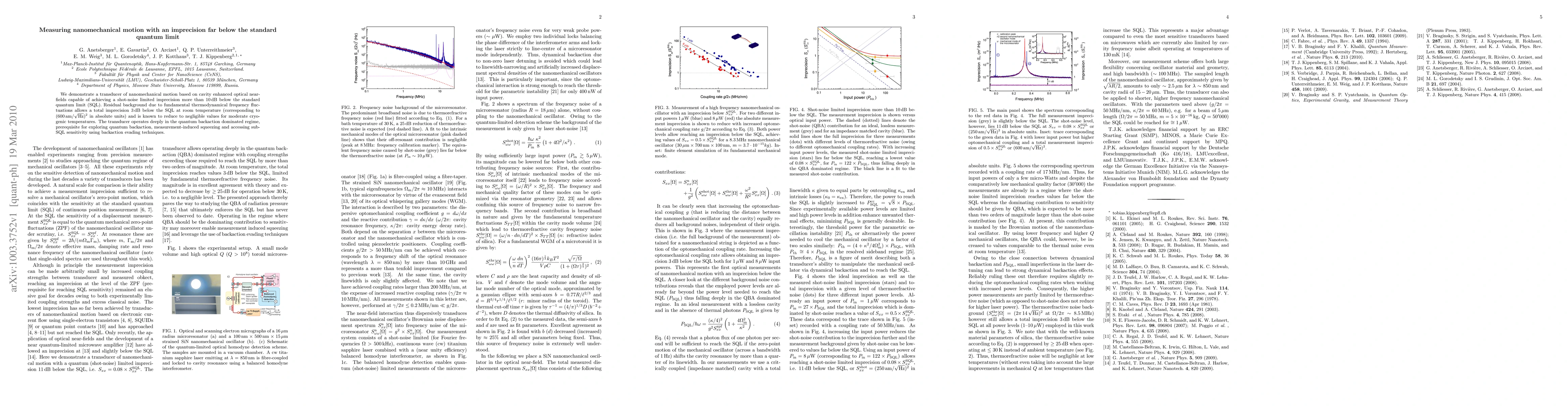 We demonstrate a transducer of nanomechanical motion based on cavity enhanced optical near-fields capable of achieving a shot-noise limited imprecision more than 10 dB below the standard quantum limit (SQL). Residual background due to fundamental thermodynamical frequency fluctuations allows a total imprecision 3 dB below the SQL at room temperature (corresponding to 600 am/Hz^(1/2) in absolute units) and is known to reduce to negligible values for moderate cryogenic temperatures. The transducer operates deeply in the quantum backaction dominated regime, prerequisite for exploring quantum backaction, measurement-induced squeezing and accessing sub-SQL sensitivity using backaction evading techniques.