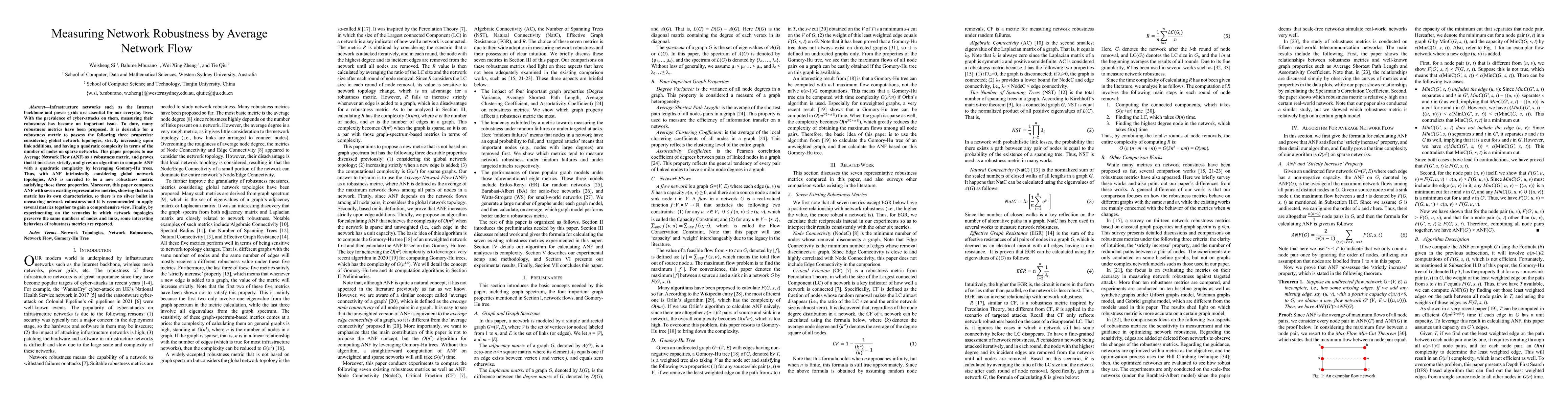 A new robustness metric called Average Network Flow (ANF) is proposed to measure network resilience, increasing strictly with link additions and having quadratic complexity on sparse networks. ANF is shown to be a useful complement to existing metrics in comprehensively evaluating network robustness.